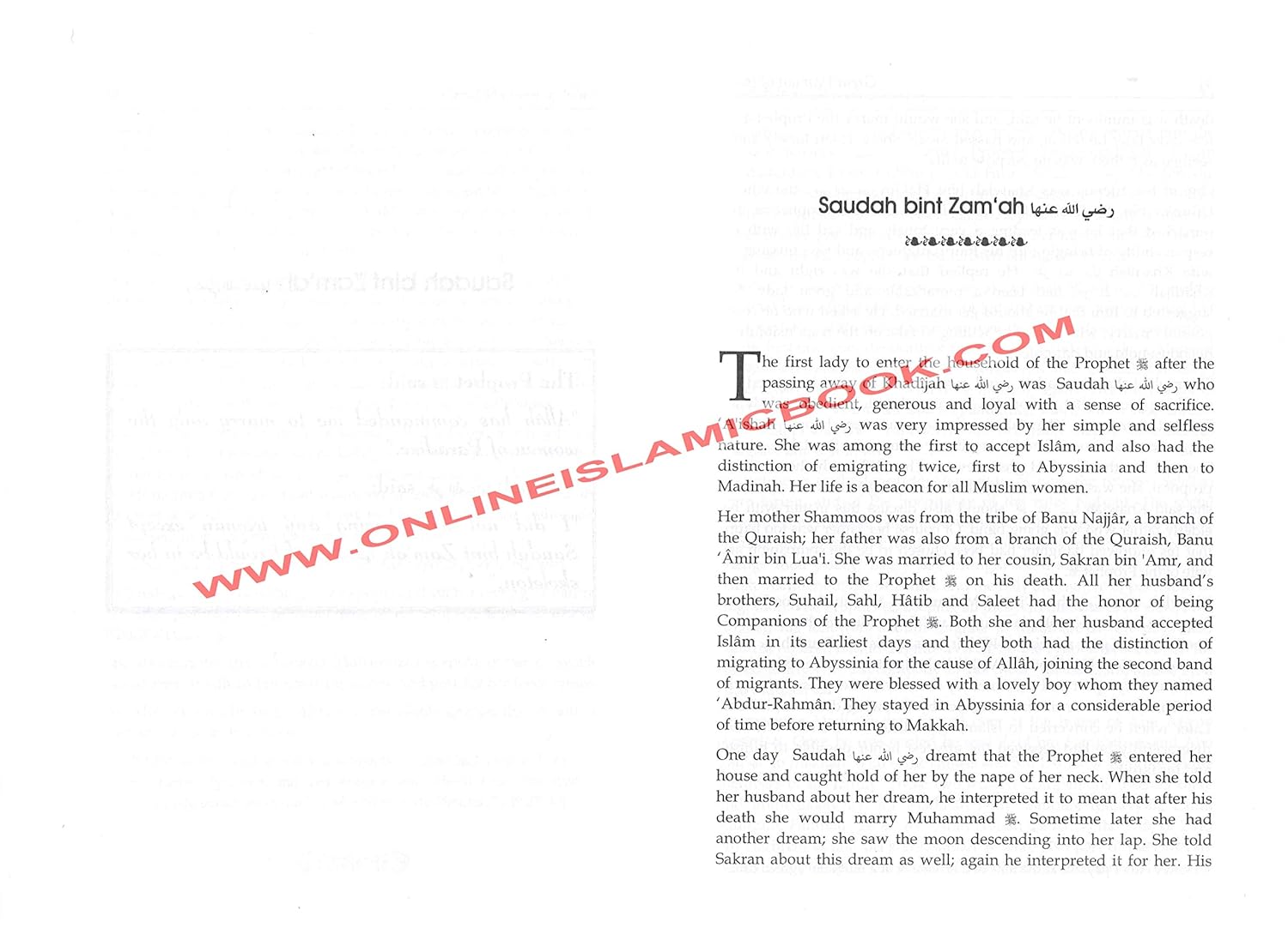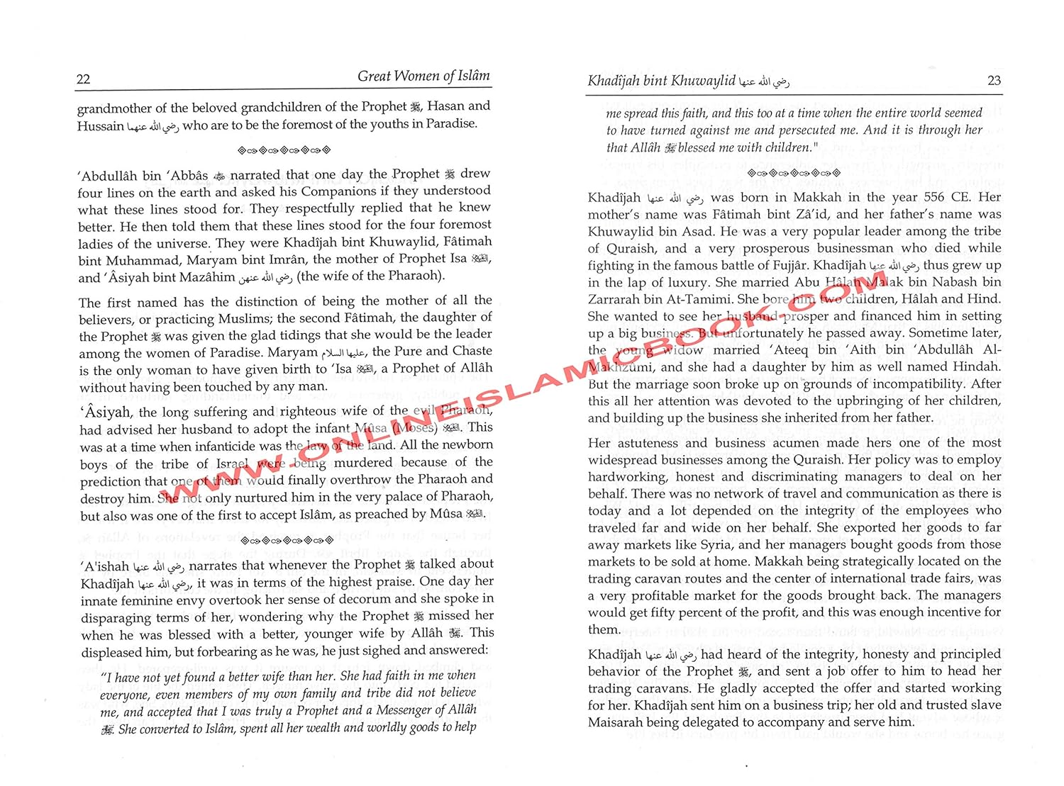 This book is about the life stories of the Mothers of the Believers and 16 other Sahabyat who had been given the good news of the paradise in this world by Prophet Muhammad (S). There are good examples in the lifestyle of the Mothers of the believers and women Companions especially for the Muslim women. It is necessary for all of us to study the Seerah of these noble and fortunate women. Besides the Mothers of the believers, the compiler of the book has included the description of those sixteen women who had been given the good News of the Paradise in this world by the Prophet Muhammad (S). Although the original book is in the Urdu language but the efforts of the translator had made it more beneficial for the readers.