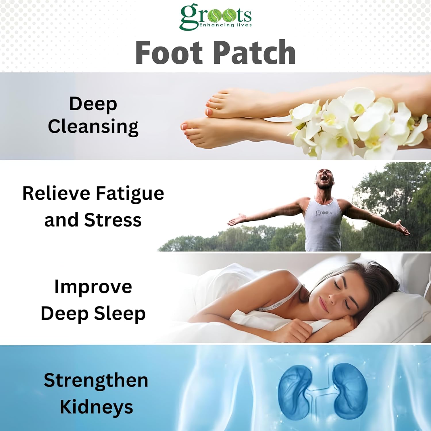 GROOTS Premium Foot Pads, Foot Patches Stress Relief Patch Solution, Toxin Remover Cleansing, Pain Relief, Weight Loss Sleep Patch for Detoxification, for Men & Women (1 Box = 10 Patches) (Pack of 1)