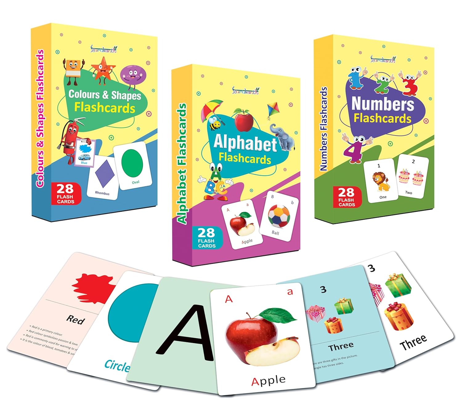 Gurukanth® Premium Flash Cards for Kids Early Learning | Easy & Fun Way of Learning 1 Year to 6 Years Babies Smart Toys (Set of 3 – ABC, Numbers. Shapes & Colours)