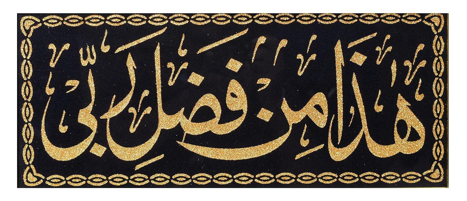 METARANGE Presents the Hadha Min Fadli Rabbi Qu’ran Ayat Which Is Nothing but A Beautiful Piece of Art and Perfection on Black Cloth Which Is Stitched in Arabic Calligraphy In Golden Thread To Look Appealing. The Islamic Photo Frames hold blessings of Allah And Piece of Mind in Hard Situations. The Islamic Photo Frames Is the Best Gift You Can Give Someone Special to You on Auspicious Occasions, Festival, New Homes, House, Offices or Anniversaries. This Photo Frame Is Made from A High-Quality Synthetic Fibre Material and ACRYLIC NON-BREAKABLE GLASS for Extra SAFETY for Our Children. This Mashallah Calligraphy Is Handstitched or Handcrafts On Black Cloth By Having The Knowledge Of Religious And Spiritual Phenomenon. The Islamic Photo Frame Is Designed to Be Stylish and Fit into Any Home, Frame Size Is 10×20 On The Outer And 8 x 18 Inner Size