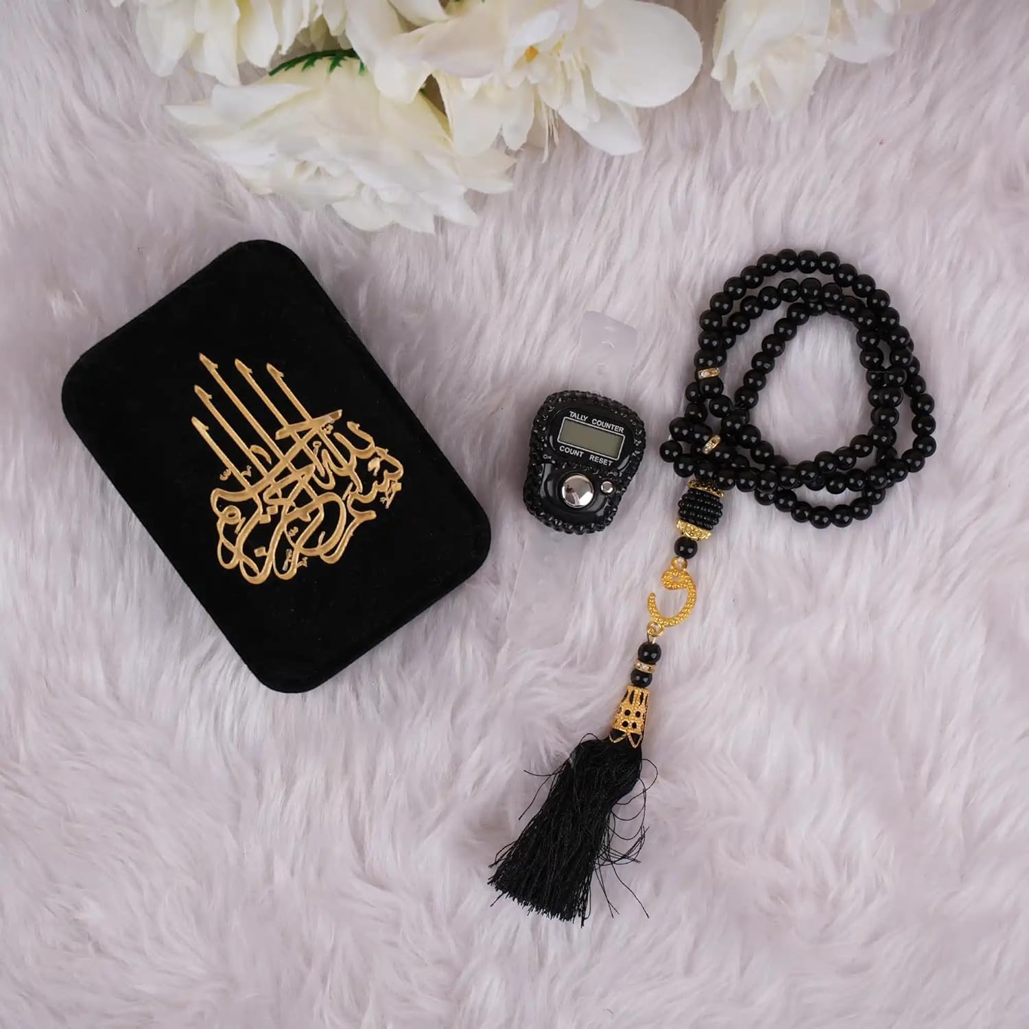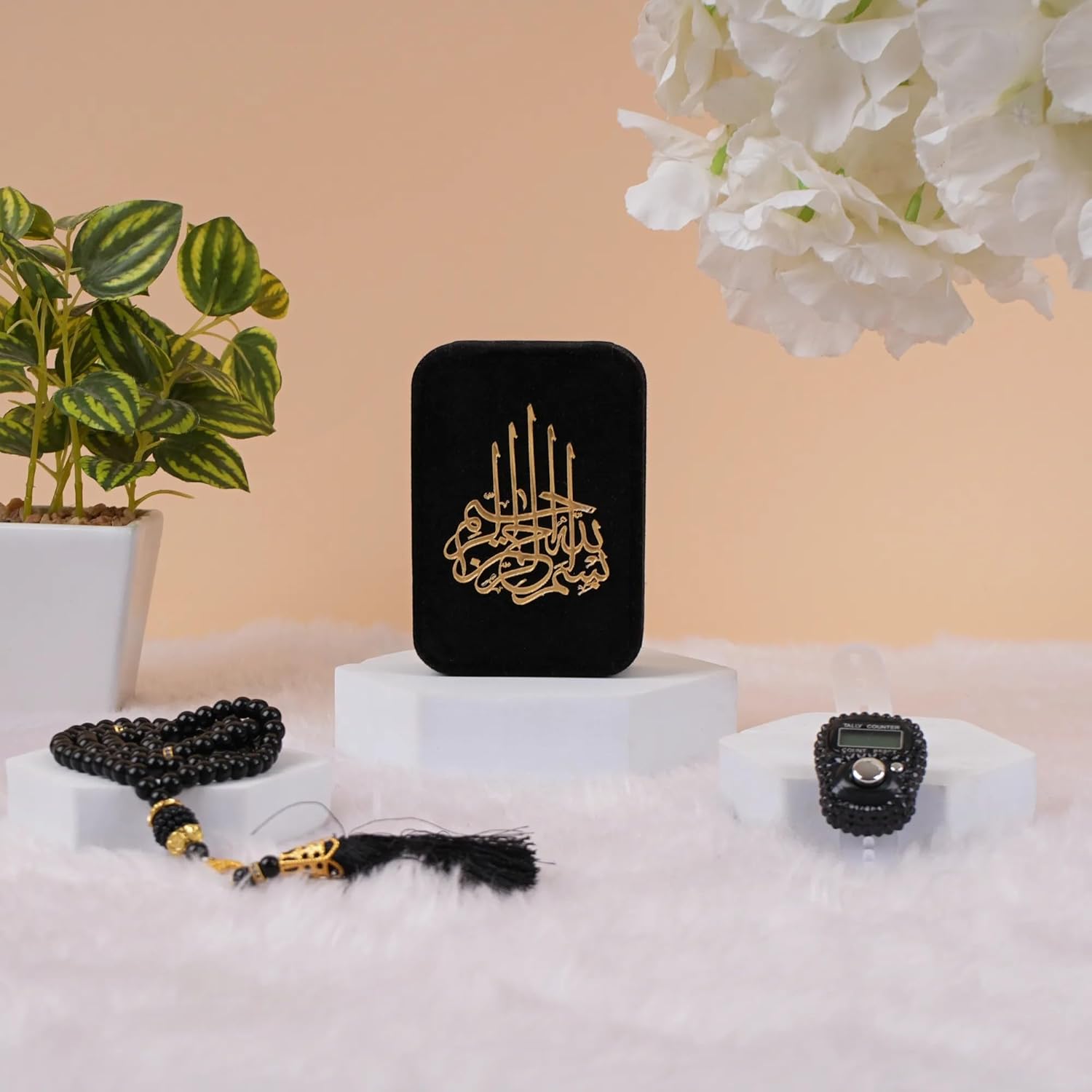 Elegant Velvet Tasbeeh Combo – A thoughtfully curated Islamic combo designed to enhance daily dhikr with a balance of tradition and modern convenience.