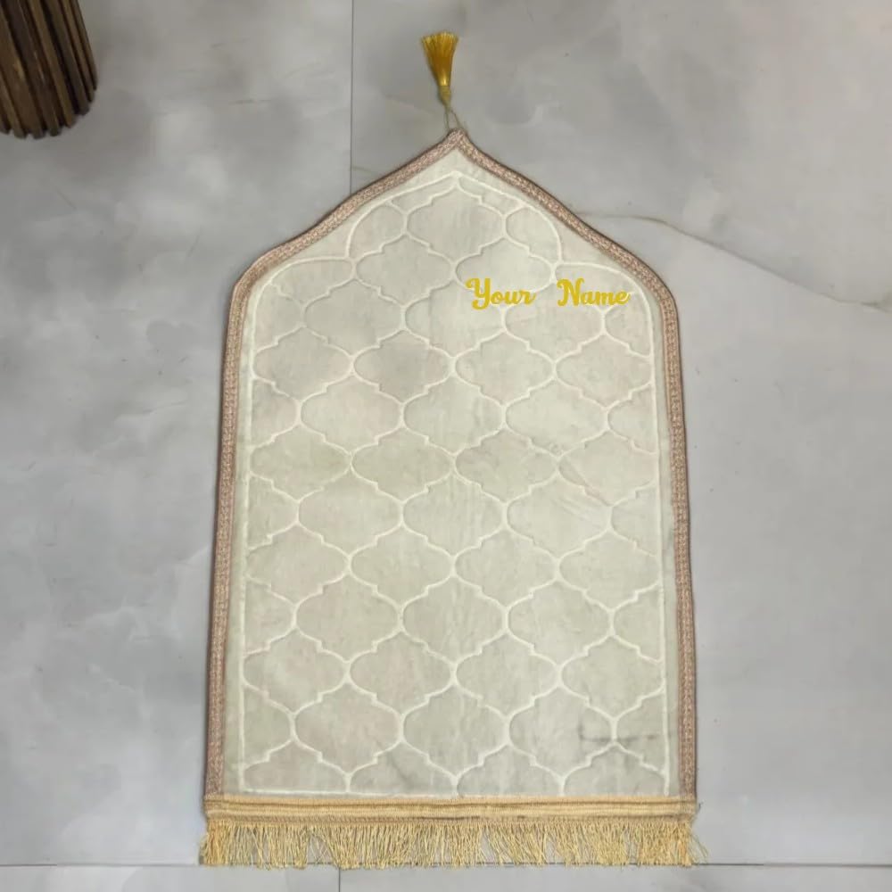 HADIYAH Kids Dome Design Premium Janamaz | Prayer Mat with Name Customisation Option | Soft Velvet Prayer Rug | White