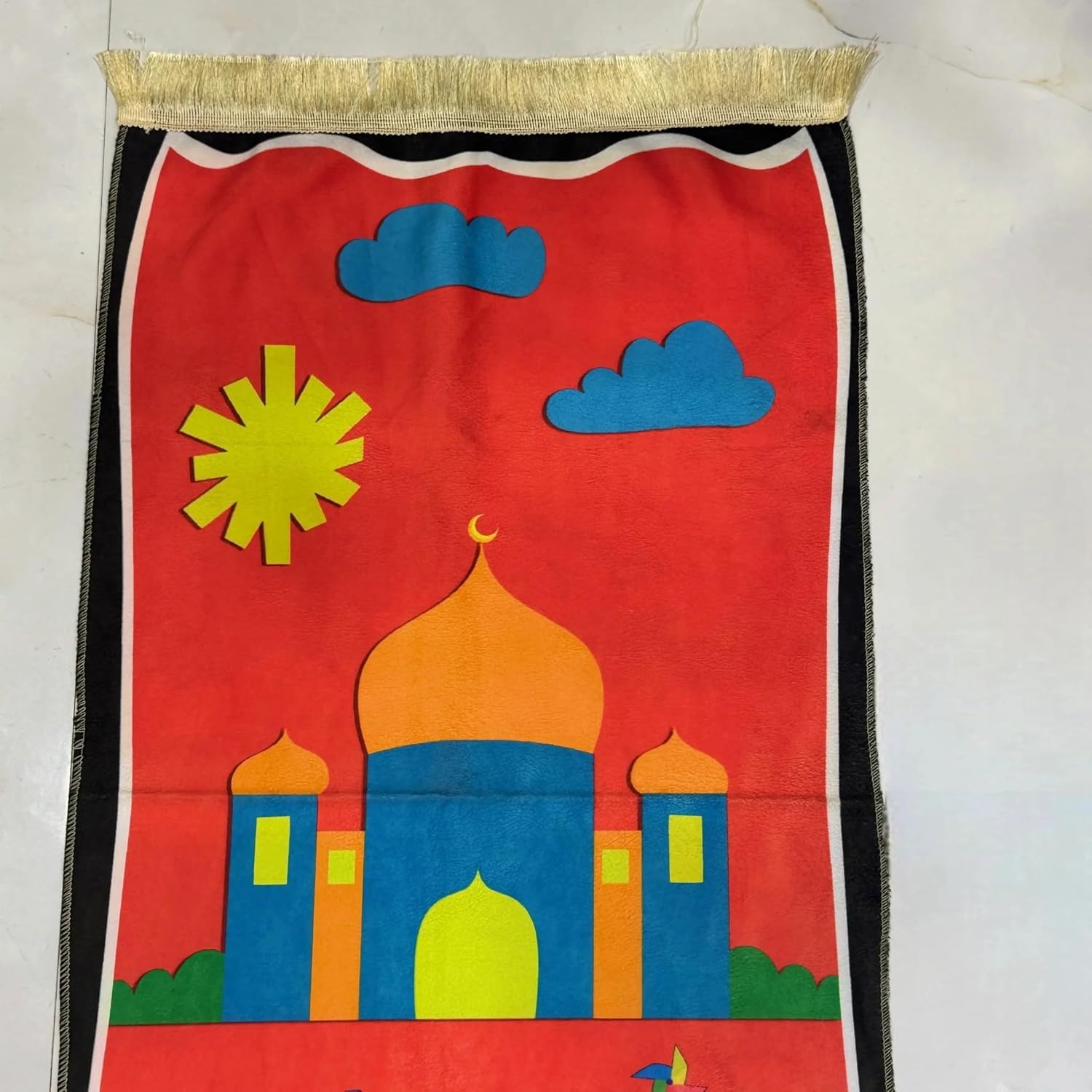 HADIYAH Rectangle Adventure Kids Design Premium Janamaz | Prayer Mat with Name Customisation Option | Soft Velvet Prayer Rug