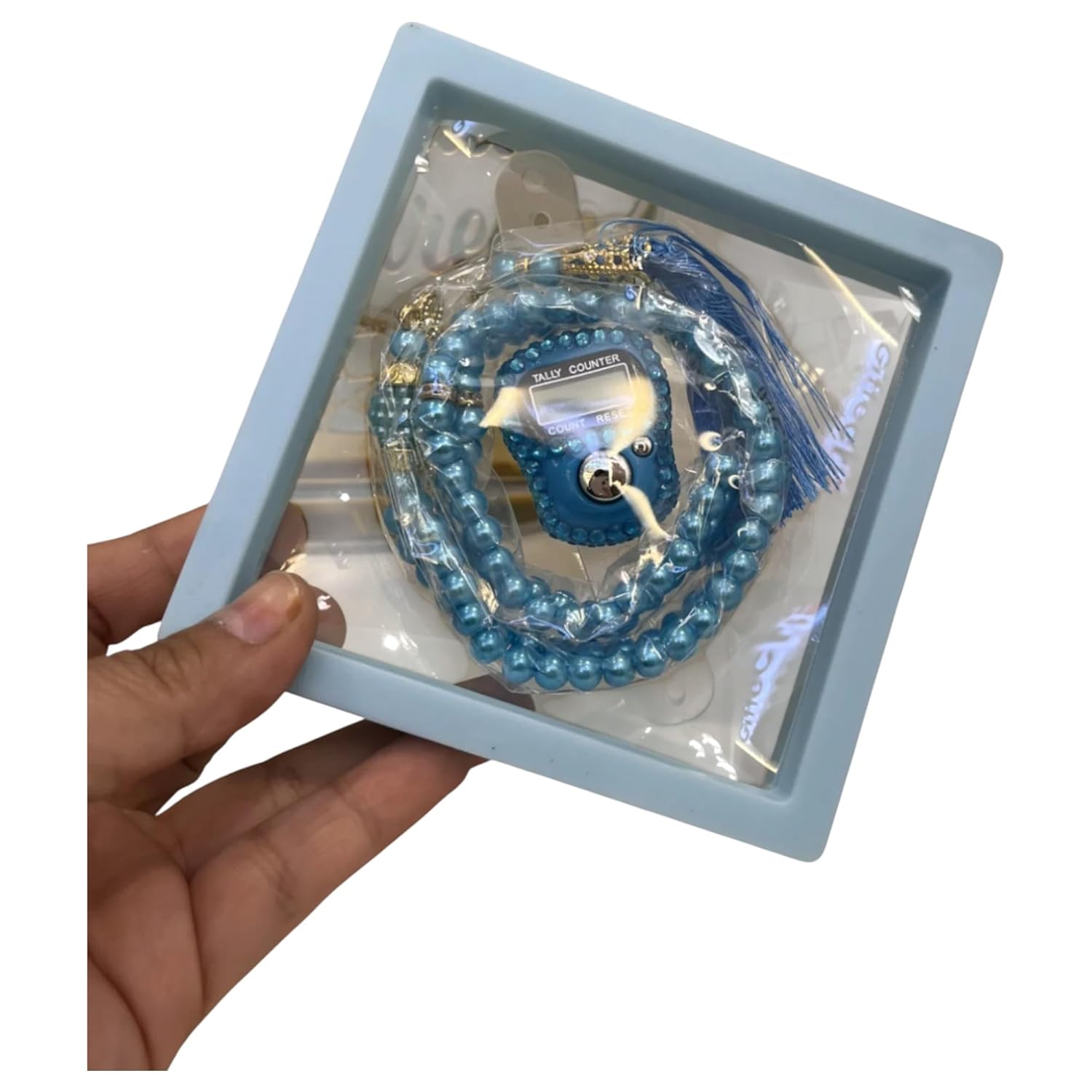 HADIYAH Sky Blue Pearl Tasbeeh with Digital Tasbeeh Counter – Transparent Combo