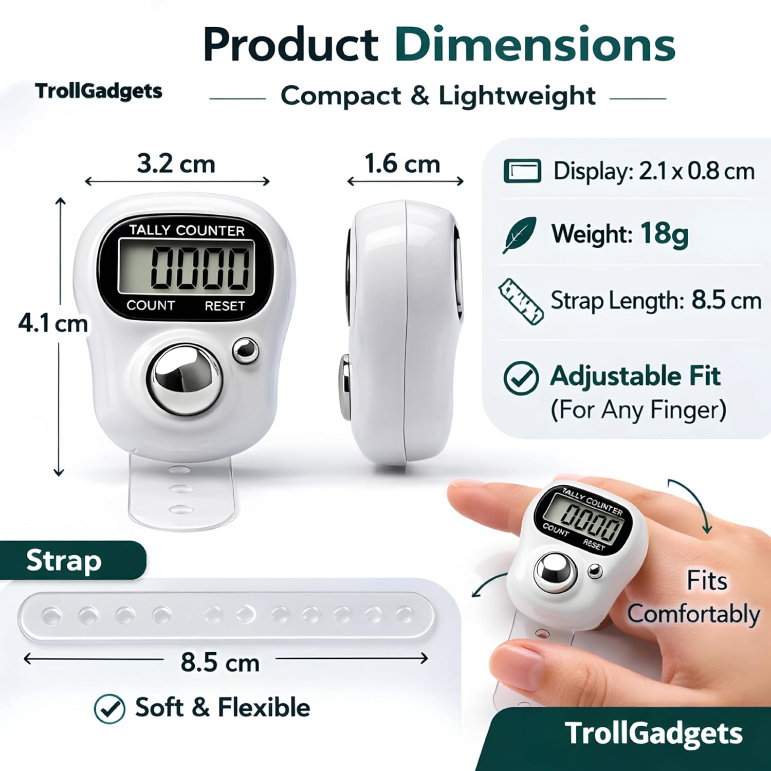 ✅ Compact & Portable Design: Lightweight and finger-mounted digital counter for easy carrying and one-hand use – perfect for prayer, meditation, or field work.