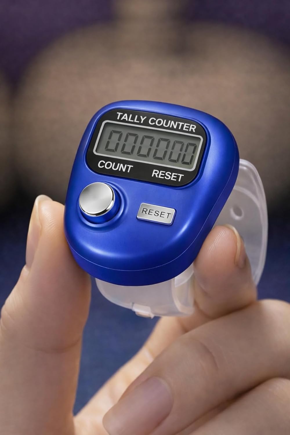 Effortlessly keep track of your chanting, meditation, or daily counts with this digital tally counter finger ring. Designed for those who seek a modern, comfortable, and efficient way to stay spiritually and mentally focused.