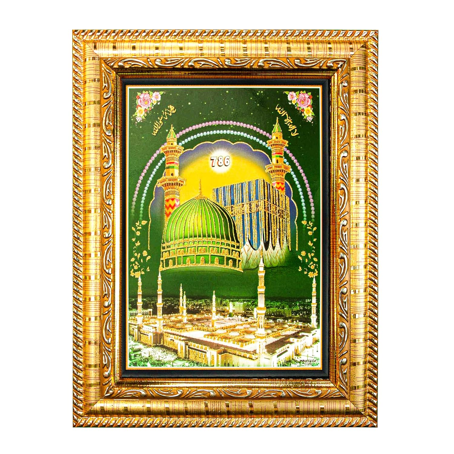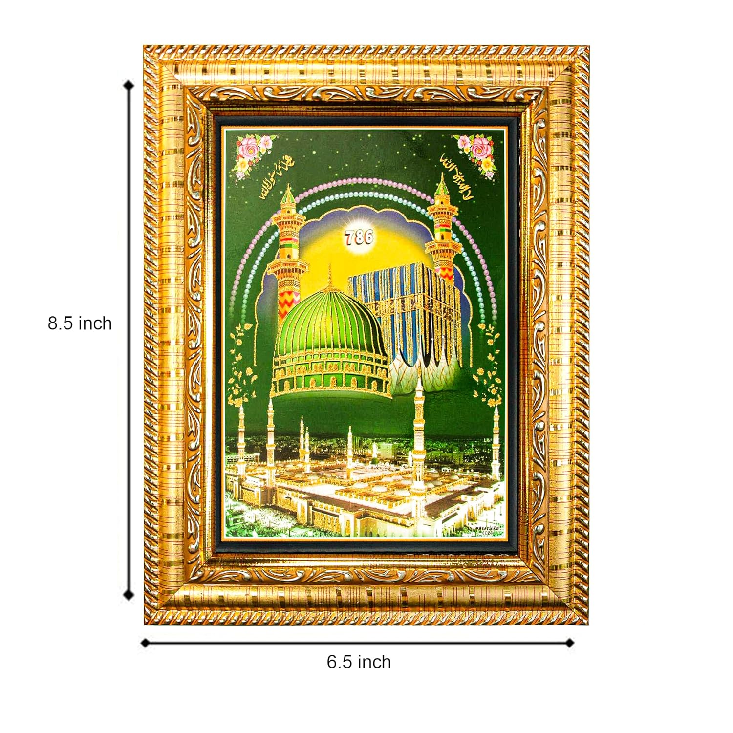 Hawai Mecca Madina Designer Wall Hanging Engineered Wood Photo Frame for Worship Use 8.5x7inch SFDI00431GLDFRM