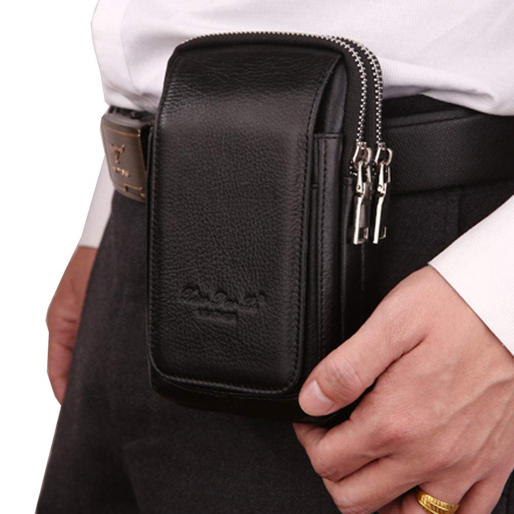 Multi-Pocket phone belt pouch for Men: leather fanny back with a huge capacity in a slim bag. Protect Valuable Cellphone Securely,Fits for large size cellphone even with thick protective case on, such as iPhone X, iPhone 8 Plus, iPhone 7 Plus, 6S Plus, 6 Plus.