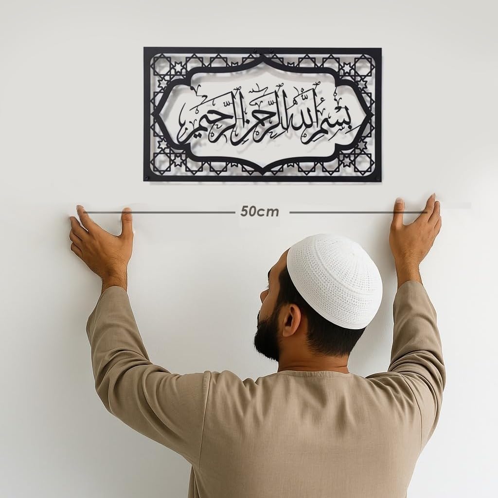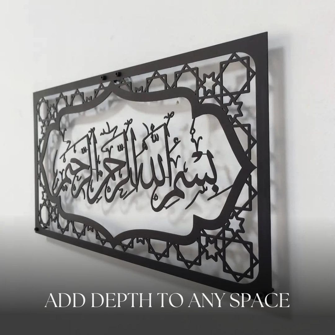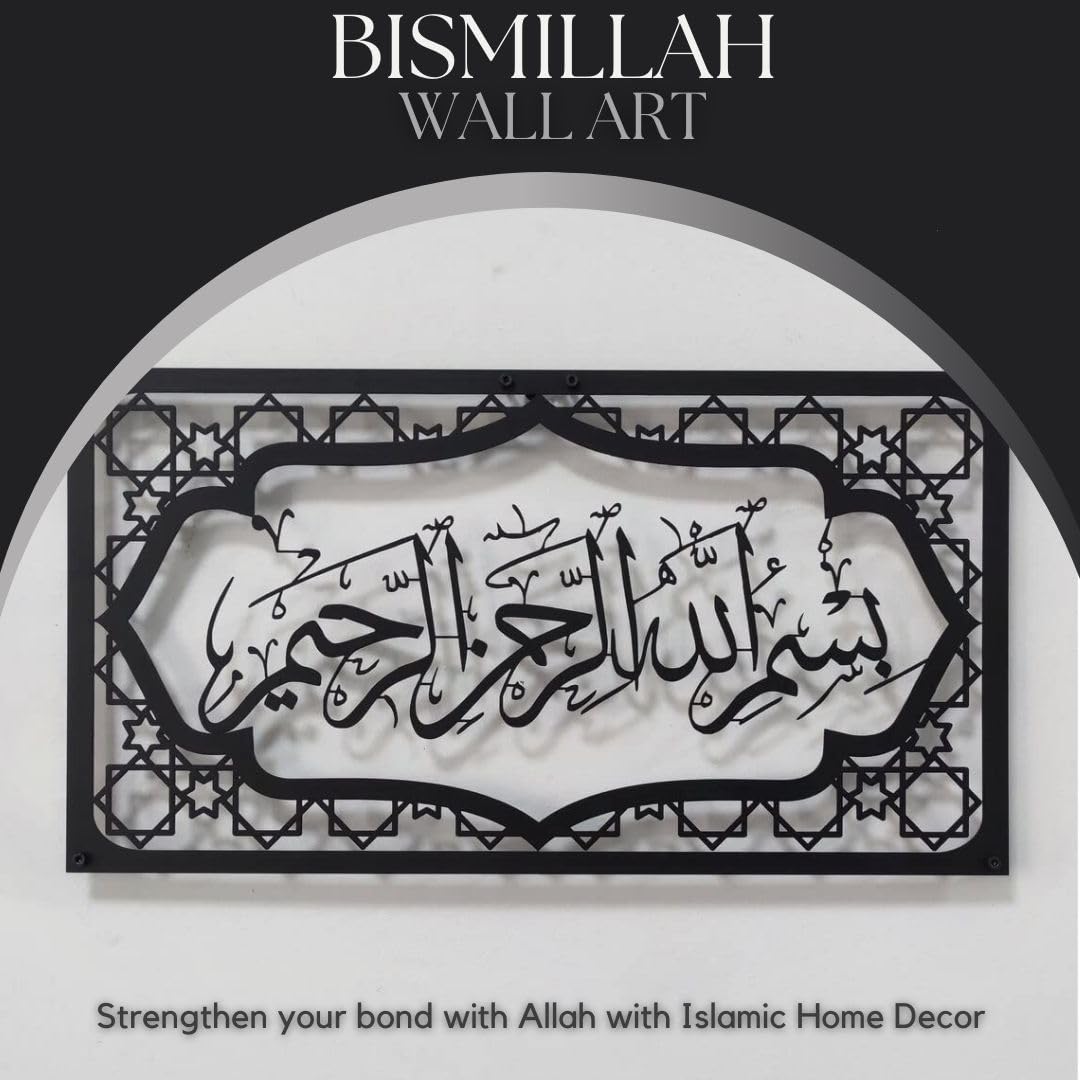 Herrlich Homes Bismillah Islamic Wall Art For Livingroom|Islamic Metal Wall Decor Gift For Muslims|Ramadan Gifts|Home & Office Decor For Muslims|Arabic Wall Calligraphy|50 X 27 Cm|Black