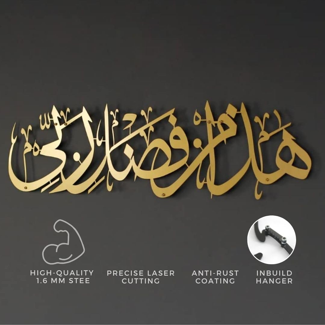 Herrlich Homes Hadha Min Fadli Rabbi Islamic Decor For Home | Islamic Metal Wall Art | Haza Min Fazle Rabbi | Muslim Islamic Gift For Home And Office | 68 Cm X 30 Cm | Horizontal | Gold