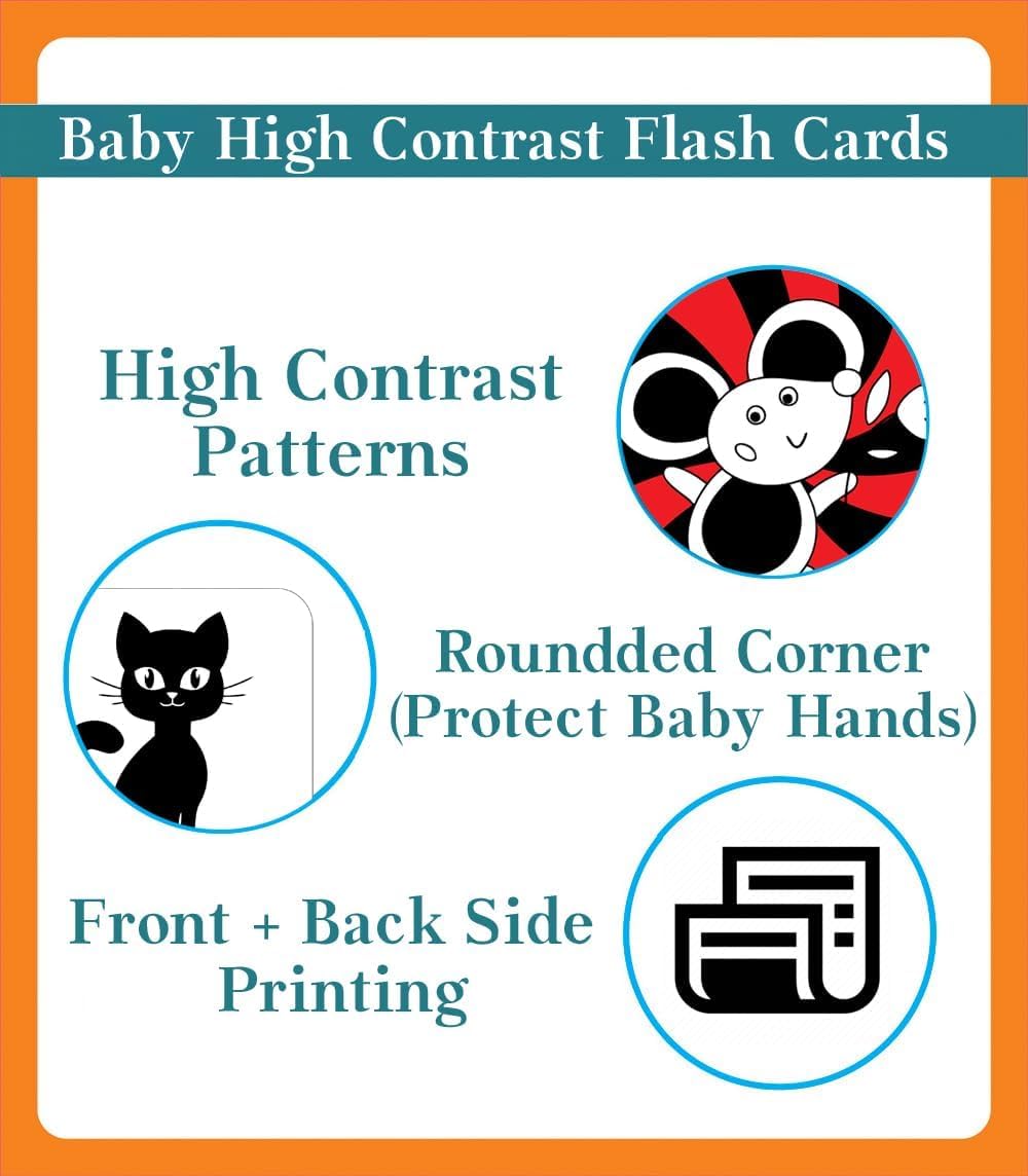 Ideal Gift: The brain development is vital for babies’ growth, these black and white high contrast baby visual stimulus cards play an important role in cognitive development. It is perfect as birthday, holidays gift for newborn and infants.