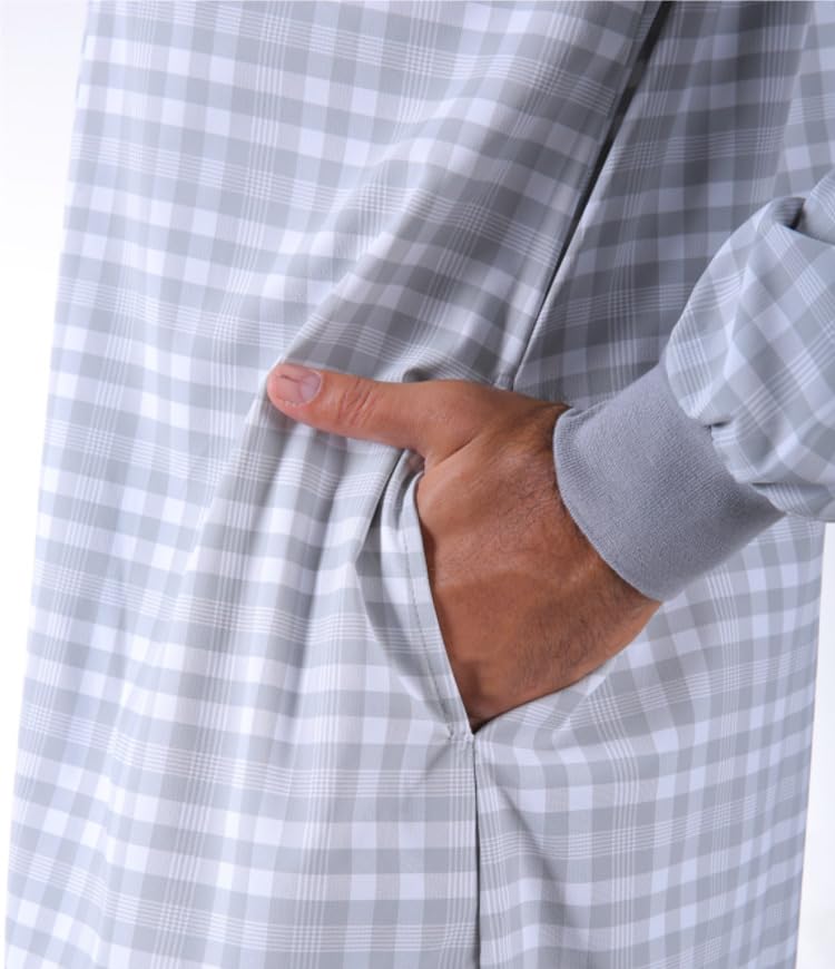 Two-piece set consisting of: 1 qamis, zipped collar and 2 side pockets & 1 matching sarouel, 2 side pockets.