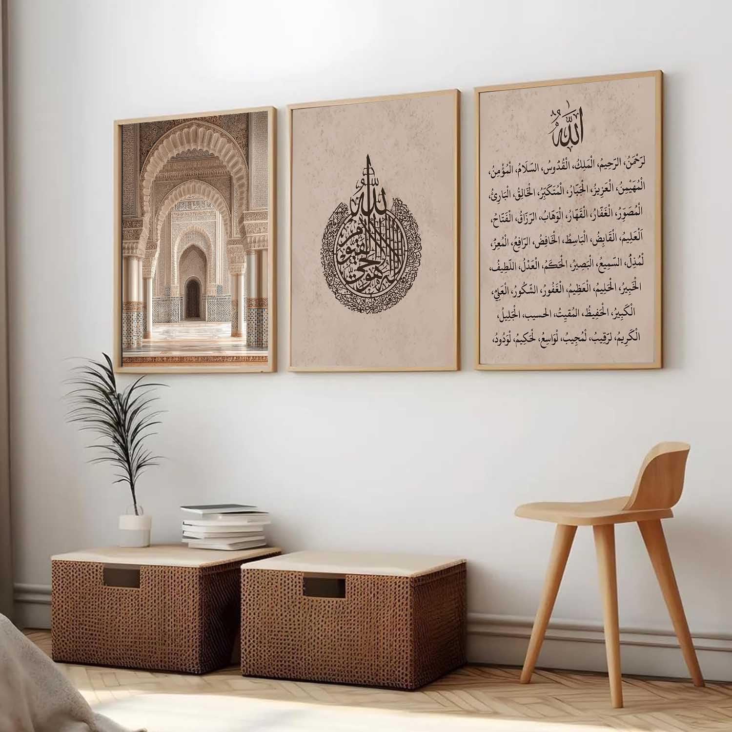 HOTHOUSE Wall Painting Islamic Home Decoration Art With Frame For Living Room Bed Room Hotel Wall Decor Digital Reprint Engineered Wood Set of 3 (Art 3, 13×17 inch, Framed)