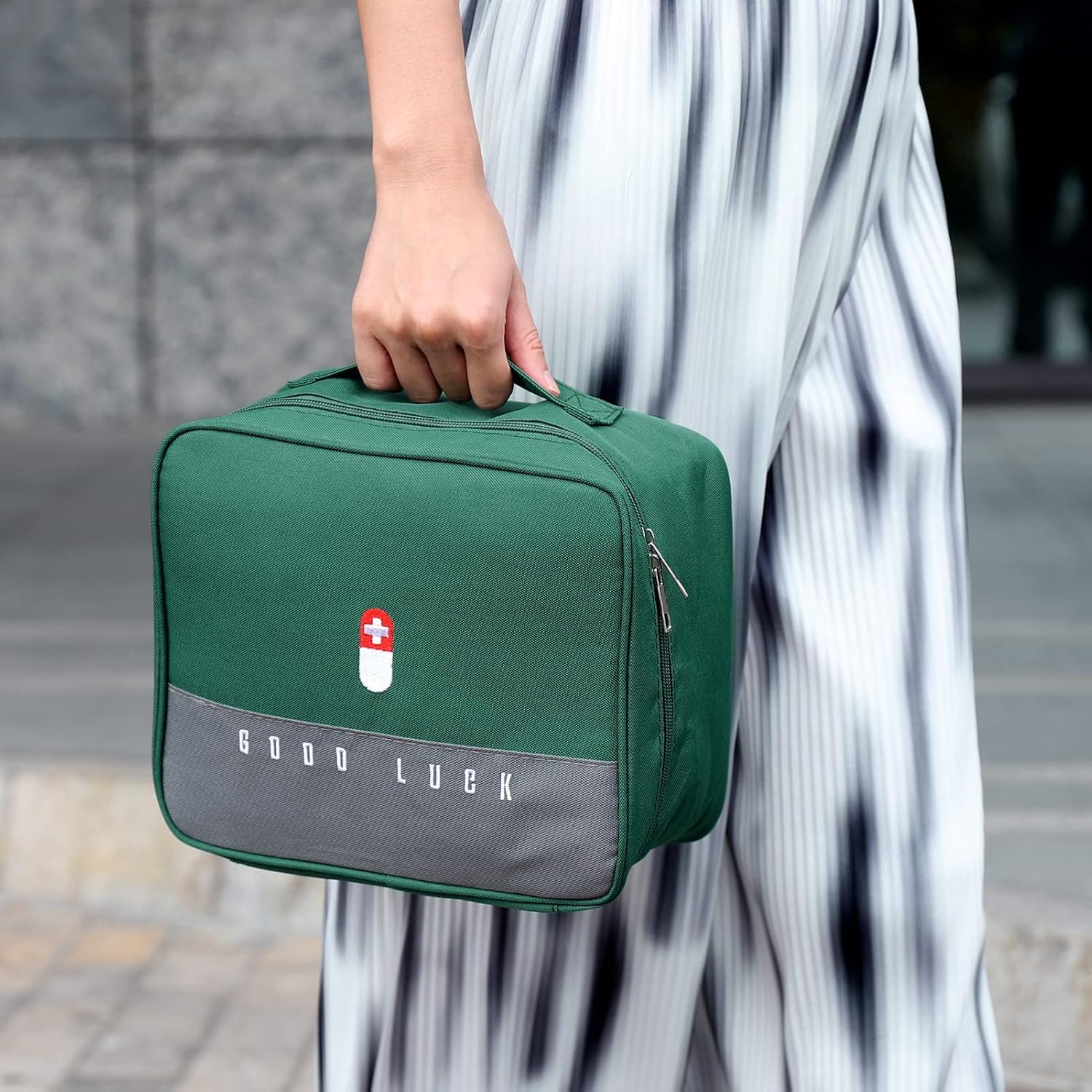 House of Quirk Polyester Portable First Aid Empty Kit Pouch Emergency Survival Bag Medicine Bag For Home Office Travel Camping Sport Backpacking (Design 2 Green)