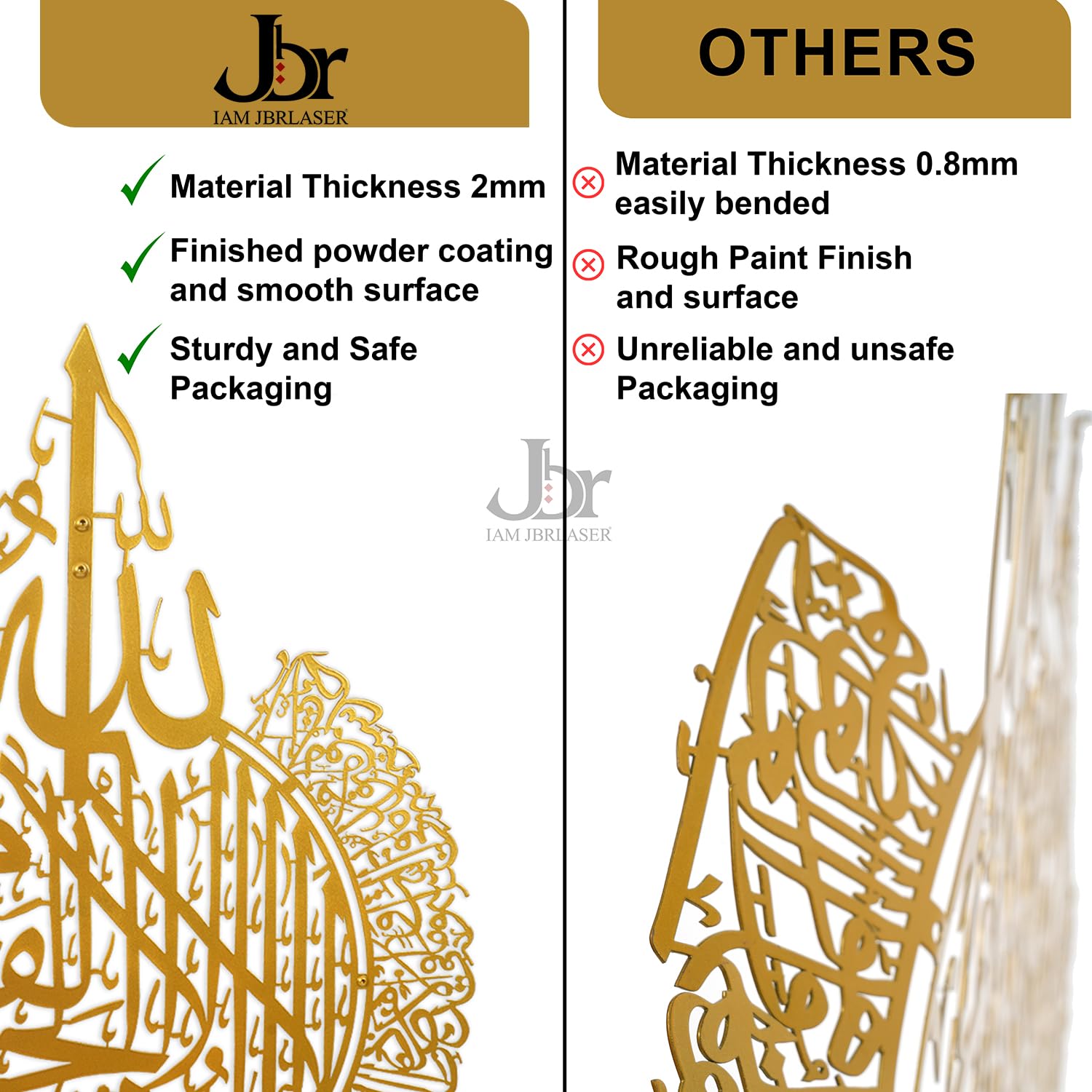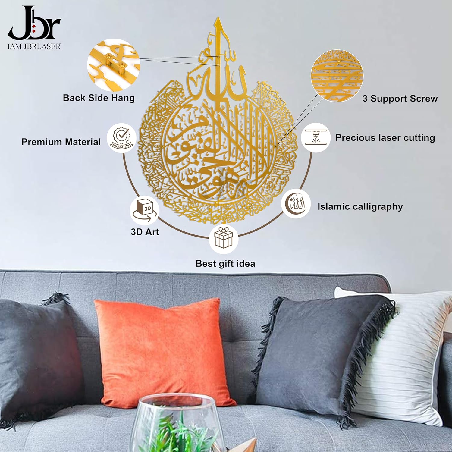 THIS Ayathul kurshi its JBR METAL INDUSTRIES OWN PRODUCT -we ae quality suppliers for this ayathul kurshi kindly check reviews also customers are mentioned JBR TEAM in reviews . Ayath ul Kursi shows the wonderful attribute of Allah which helps us in giving the thought regarding how could we contemplate Allah. It is significant in importance and has many advantages, some of which incorporate; *When venturing out from home, in the event that one presents it once, the Almighty has one gathering of Angels to come and ensure you. Please note: JBR Metal industries are original manufacturer for this ayathul kurshi GOLD ,we are quality home decor manufacturer..