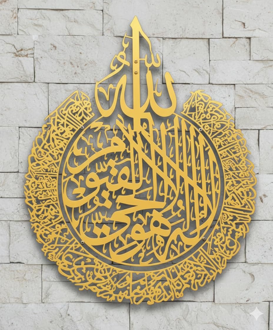 IAM JBRLASER Metal Ayatul Kursi Metal Wall Art, Islamic Wall Art, Calligraphy, H 30 INCH x W 24 INCH (Gold)
