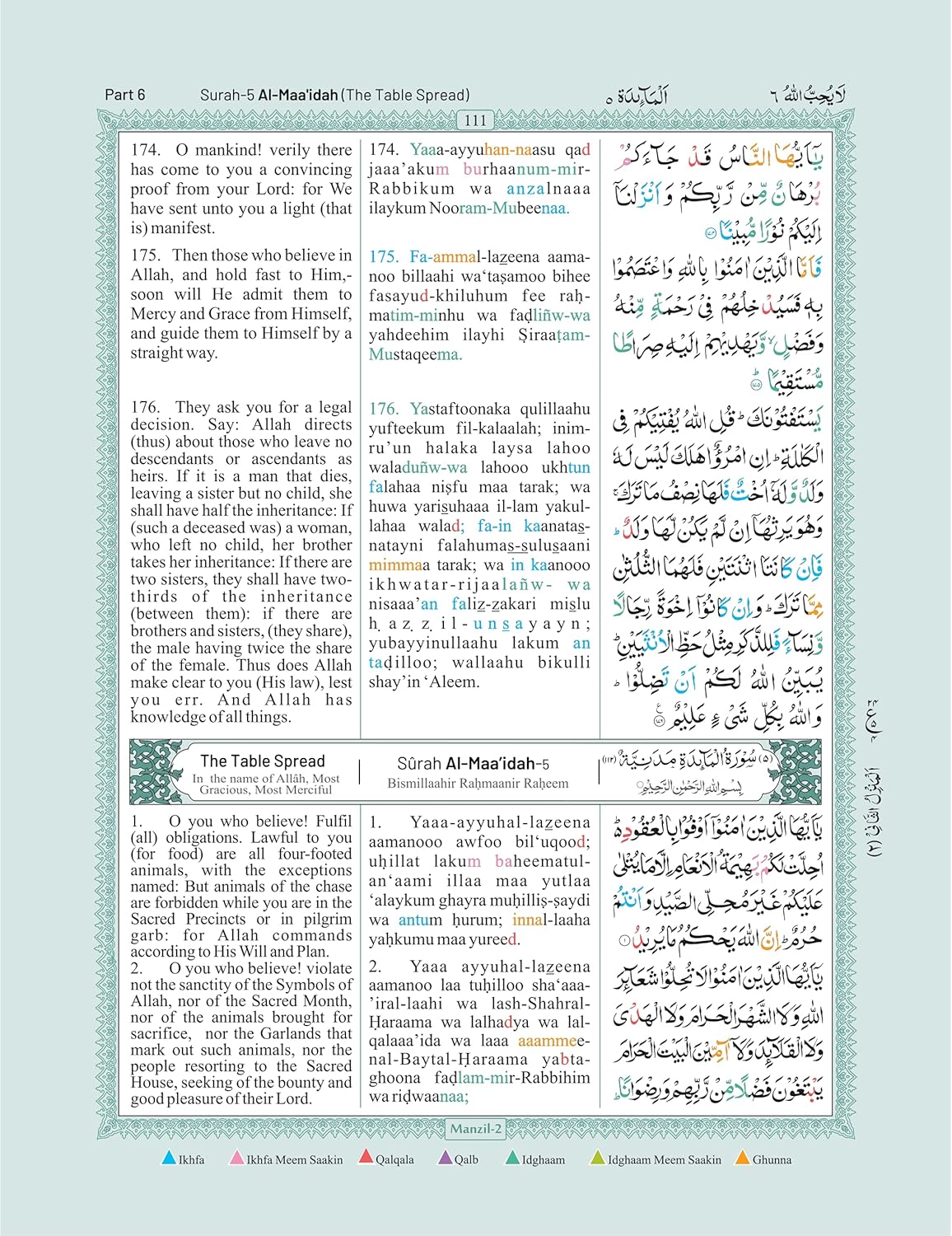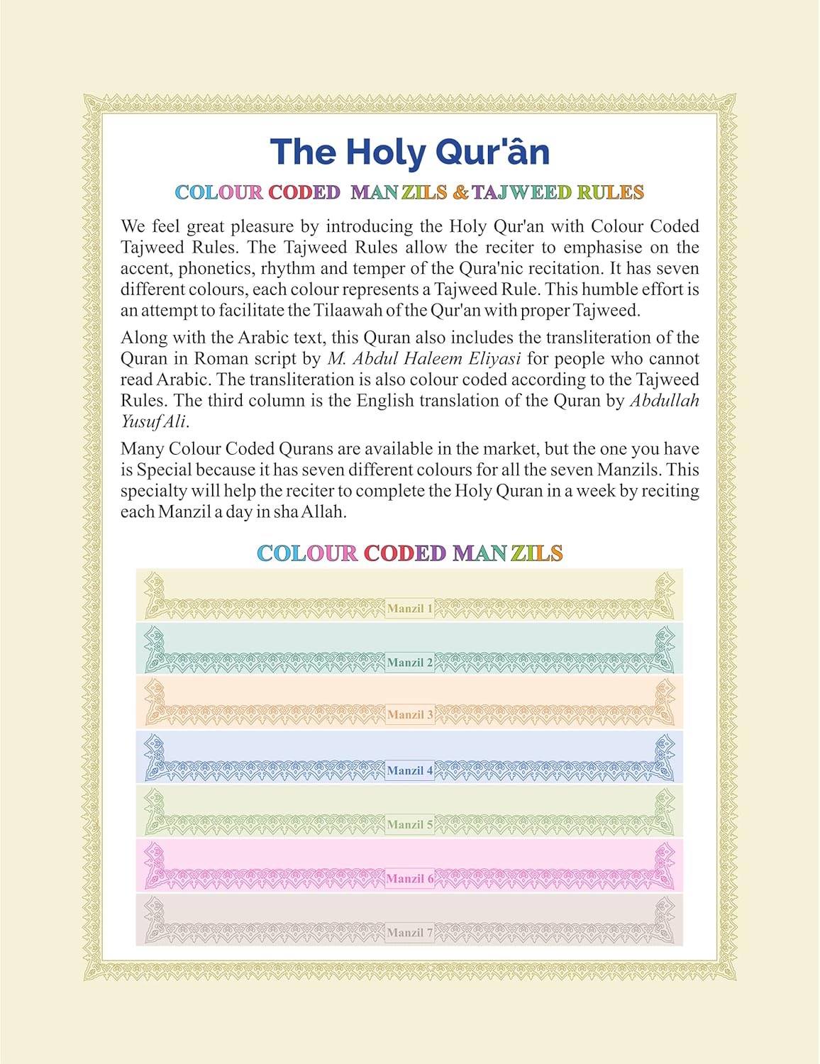 idara impex The Holy Quran Colour Coded Arabic Text And Transliteration With English Translation By Abdullah Yusuf Ali | Roman English, Multicolour