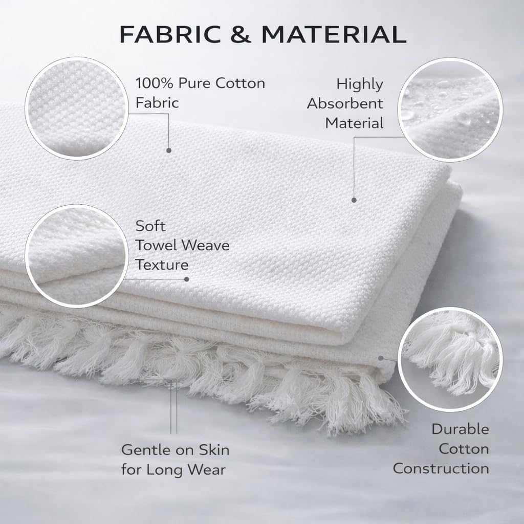 100% PURE COTTON TOWEL CLOTH Soft, breathable, and absorbent fabric for comfort during long hours of worship.