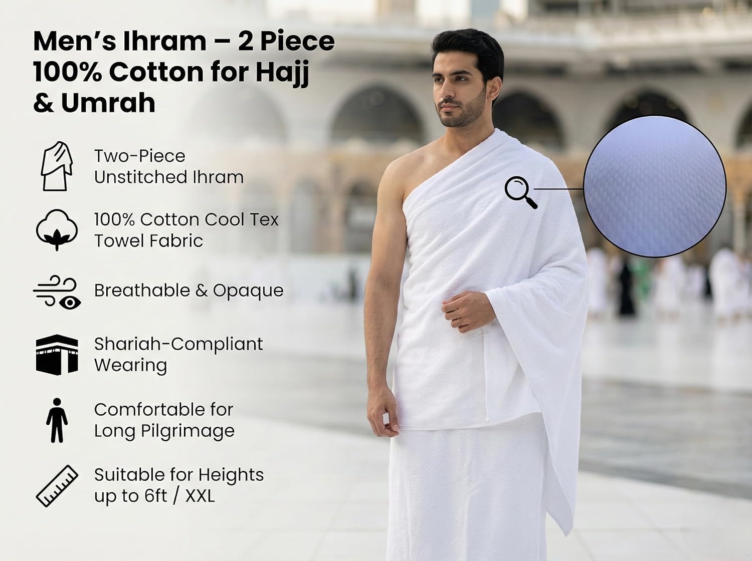 SHARIA COMPLIANT IHRAM Simple, modest, and compliant with Islamic guidelines for Ihram use.