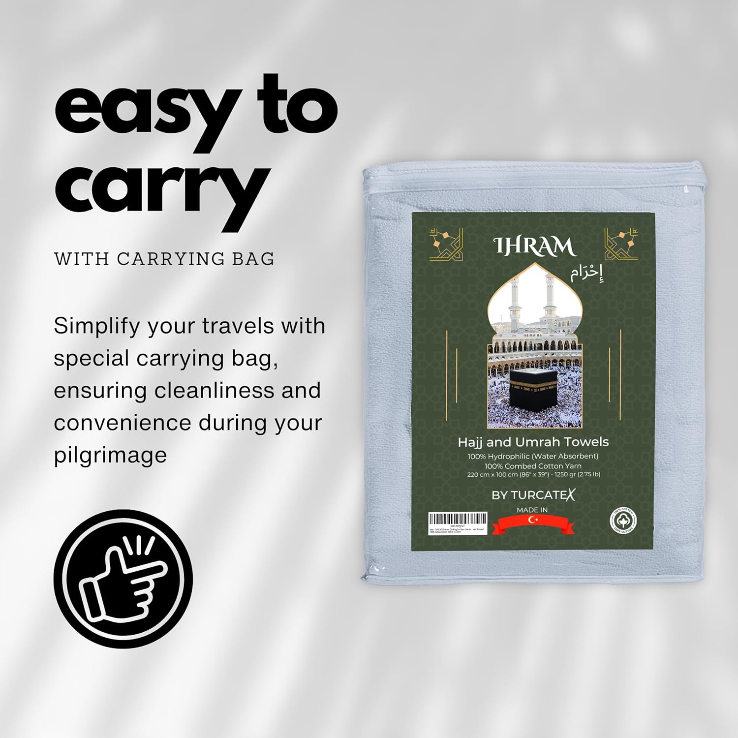 Experience the ultimate comfort and convenience with the TURCATEX IHRAM, meticulously crafted from 100% cotton, designed for your spiritual journey.