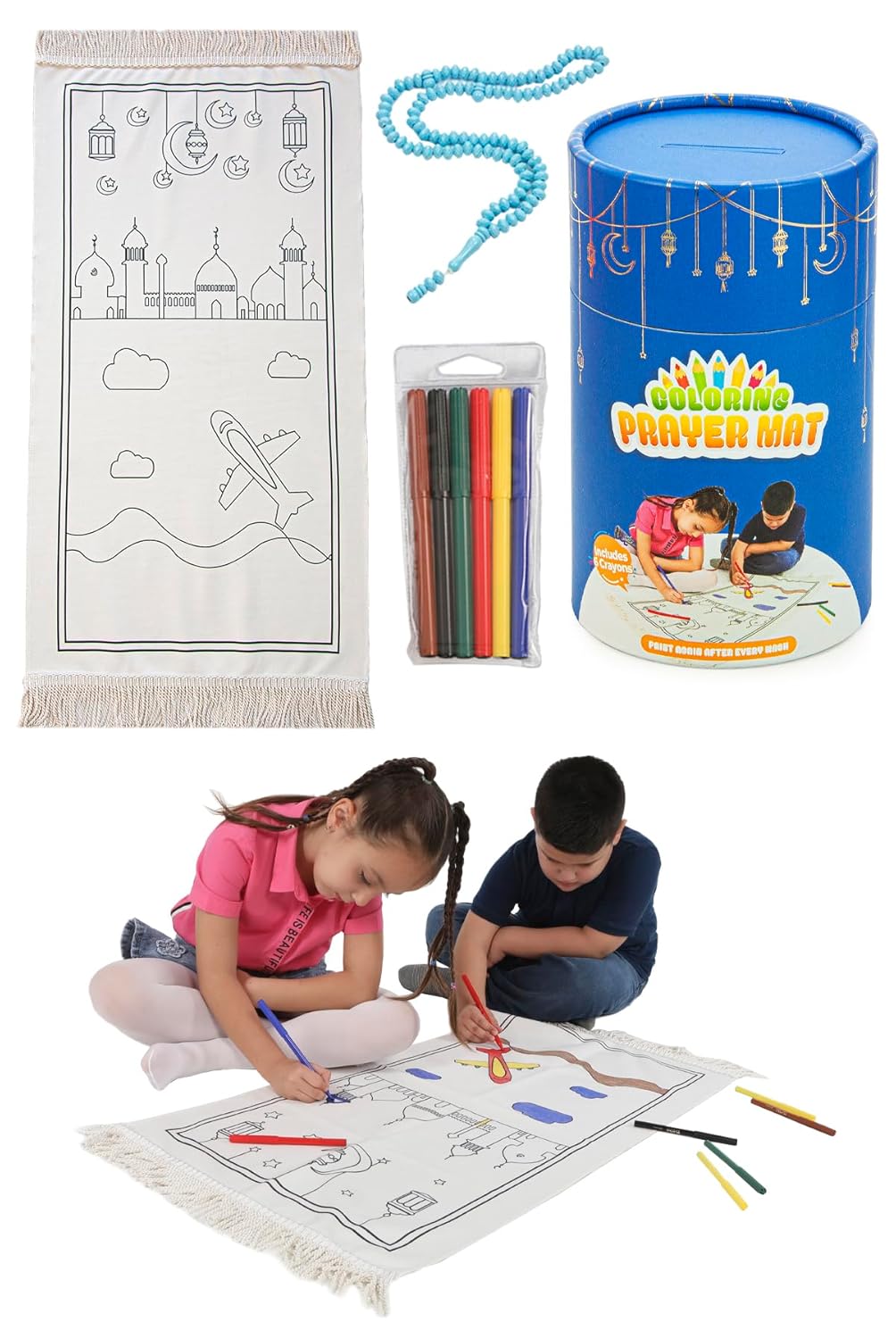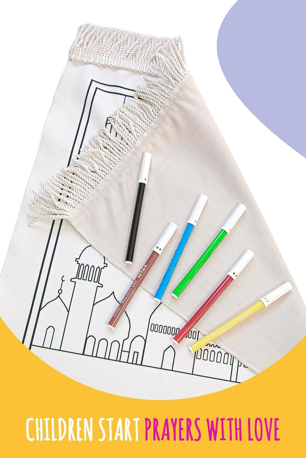 *Children’s Washable Paintable Prayer Rug Set consists of Washable Children Prayer Rug, Paint Pen with 6 Colors, Crystal Looking Prayer Rosary Cylinder Money Storage Special Box * You can distribute this set as a magnificent gift to your loved ones on your special days. * You can give to the people that you loved for your religious organizations, eid, ramadan and all of Islamic events. * It’s a complete set for childrens who’s in Islam. * Do not hesitate to contact us 7/24 if you are wondering or experiencing any problems related to our products.