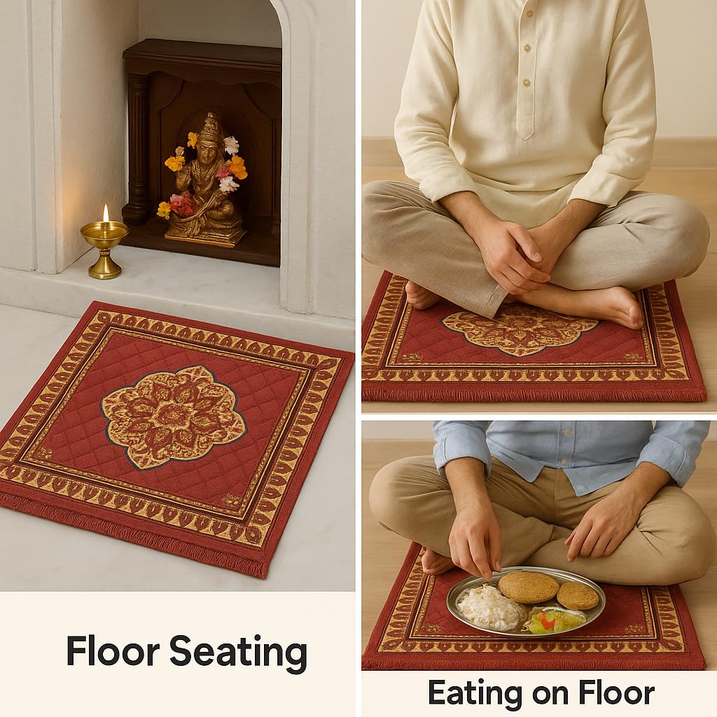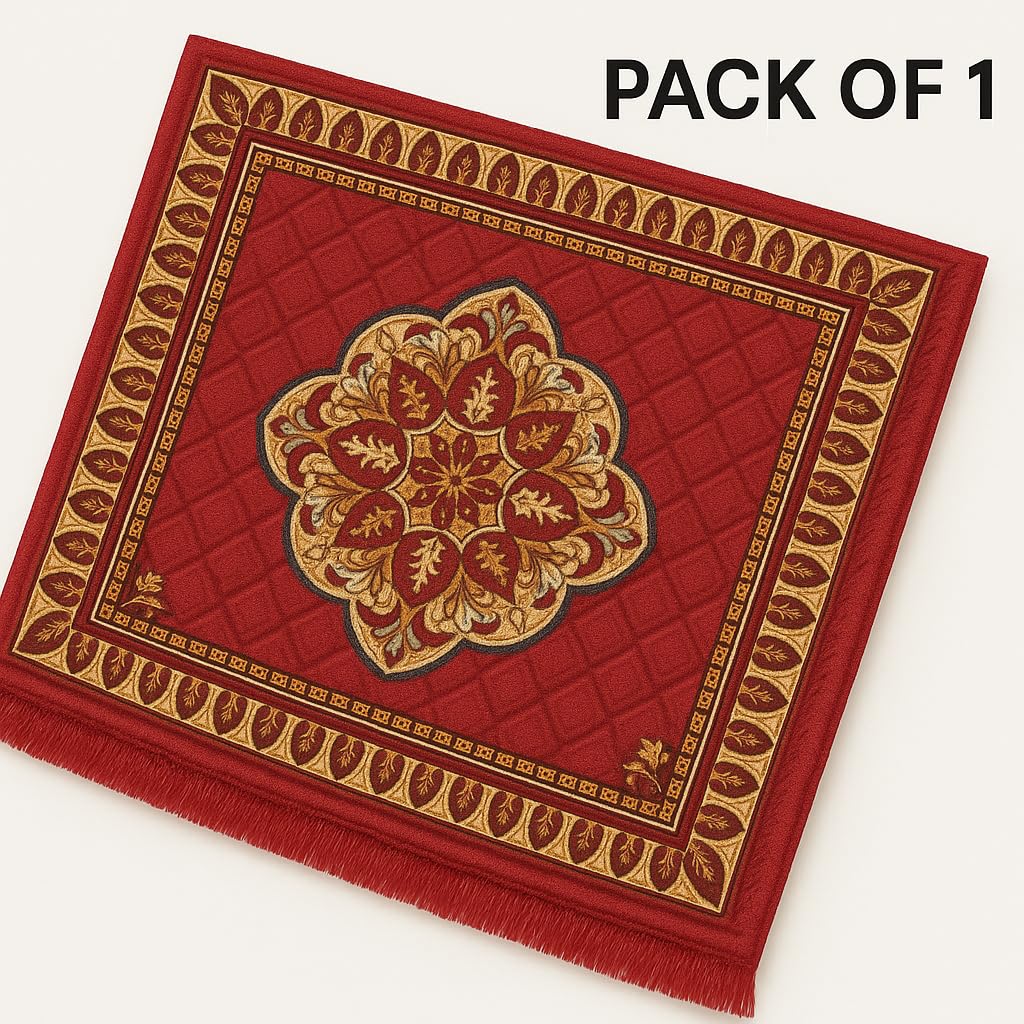 Ink Craft Red Printed Velvet Pooja Mat | 24x Premium Square Prayer Mat | Pack of 1 | Eco-Friendly & Durable Design for Home Mandir Construction | Durable Everyda