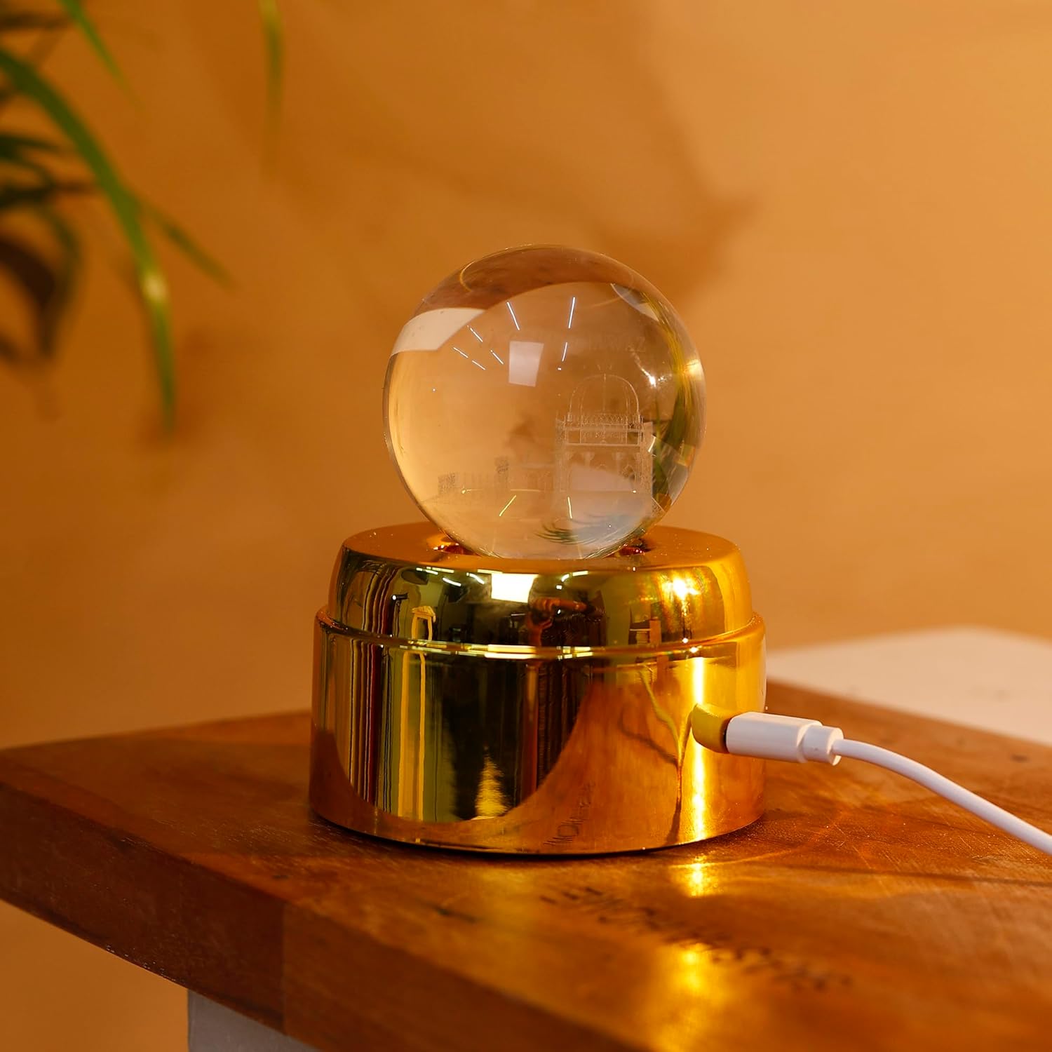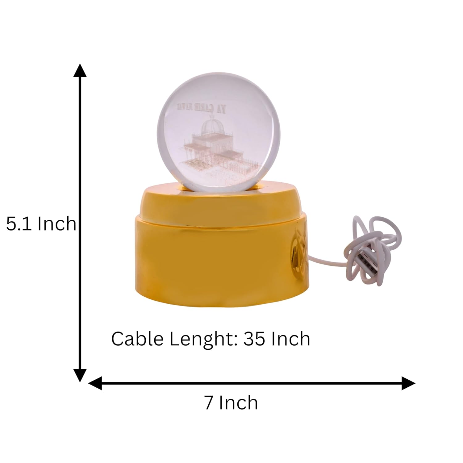 Islamic Crystal Ball Golden LED Rotating Lamp with USB Stand – Ya Gharib Dargah Design, Home Decor Light