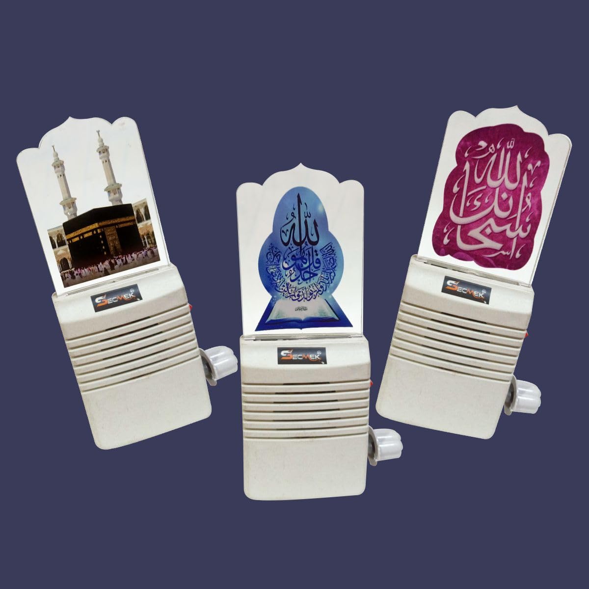 Bring spirituality and peaceful illumination to your home with the SECMEK 5-in-1 Islamic LED Night Light with Kaaba Design. Designed for modern Muslim households, this plug-and-play religious night lamp combines elegant Islamic décor with meaningful functionality. This multifunction Islamic lamp features built-in Azaan, Kalma recitation, Naat, and Islamic chanting audio, helping create a peaceful and prayer-ready environment. The integrated speaker produces clear, soothing sound ideal for daily use. Crafted with durable plastic and acrylic material, the lamp delivers long-lasting performance while maintaining a premium decorative appearance. The soft LED glow works perfectly as a night light, prayer light, or decorative wall lamp. Perfect for homes, mosques, prayer rooms, hostels, and Islamic study spaces, this Islamic LED lamp is also an excellent gifting option during Ramadan, Eid, and other religious occasions.