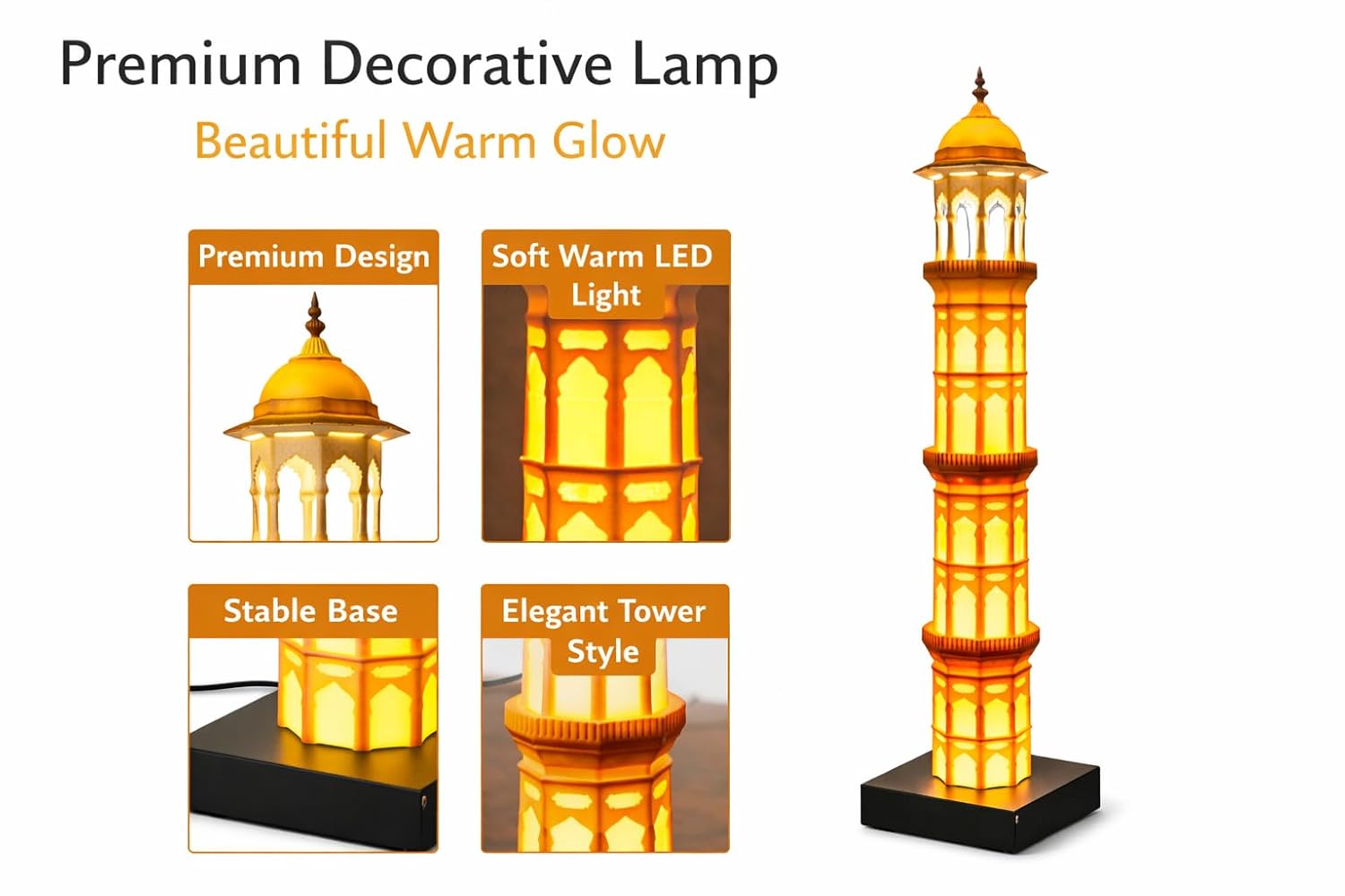 Islamic Minaret LED Table Lamp – Mosque Tower Style Decorative Night Light with Warm Ambient Lighting, Elegant Islamic Home Decor Lamp for Living Room, Bedroom & Ramadan Gift