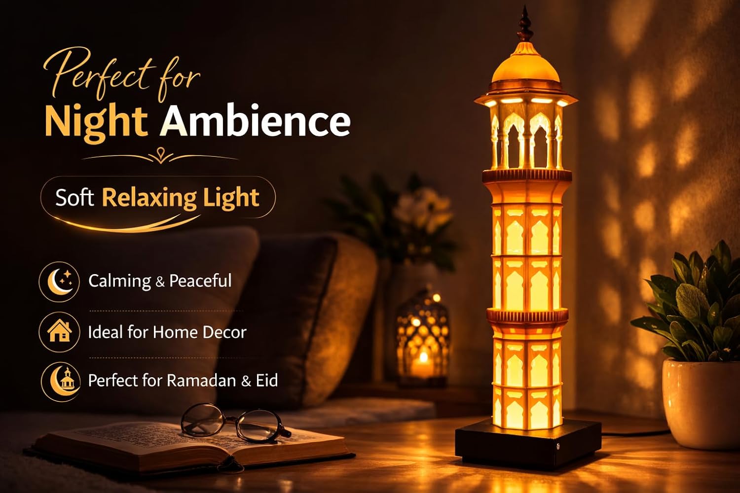 Perfect Islamic Home Decor : Living room, bedroom, prayer room ya study table par rakhne ke liye stylish decorative lamp hai jo room ko elegant look deta hai.
