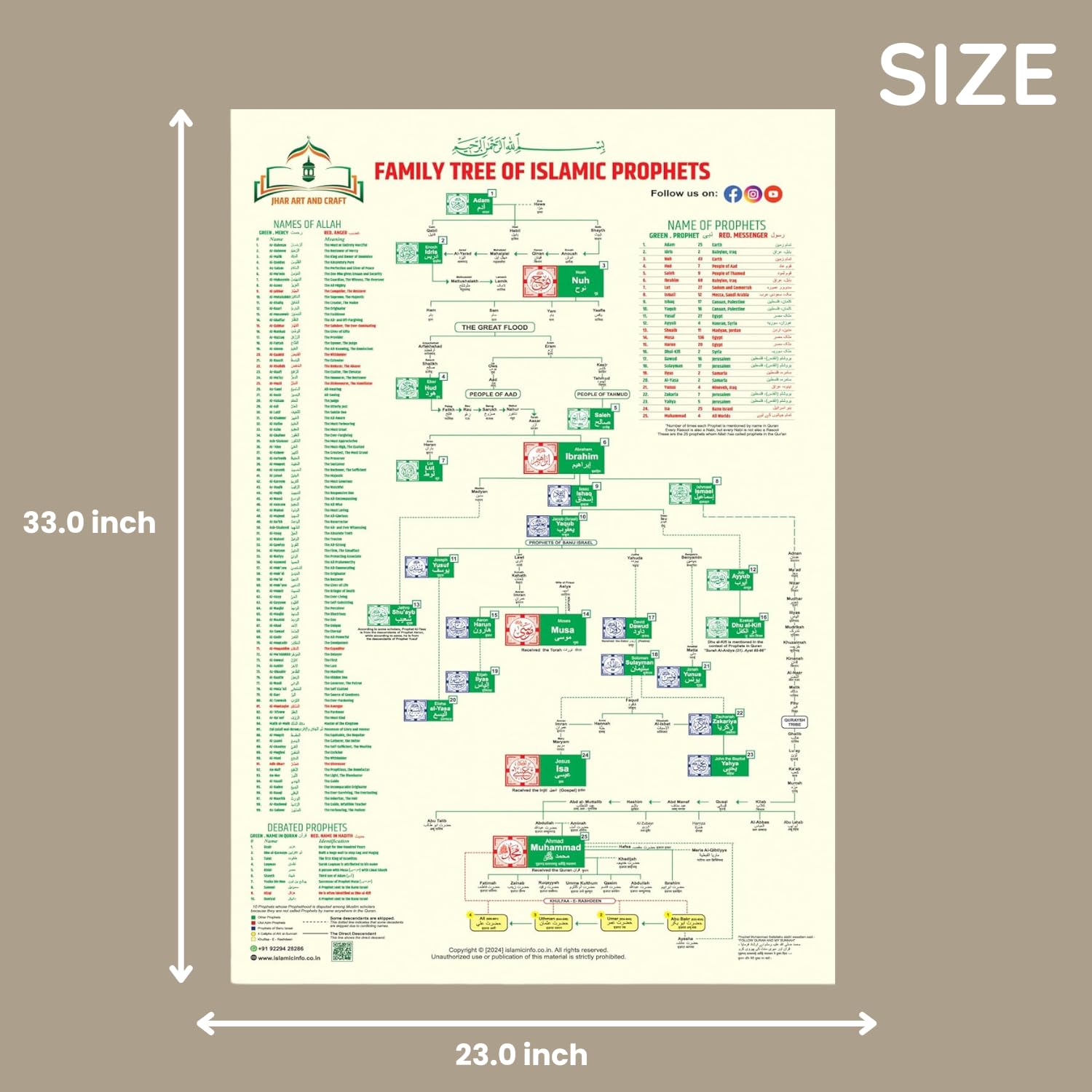 Islamic Prophets Family Chart Poster – 23×33 inch Large Wall Poster – Educational Islamic History Chart for Home, School & Mosque, Vibrant Printing
