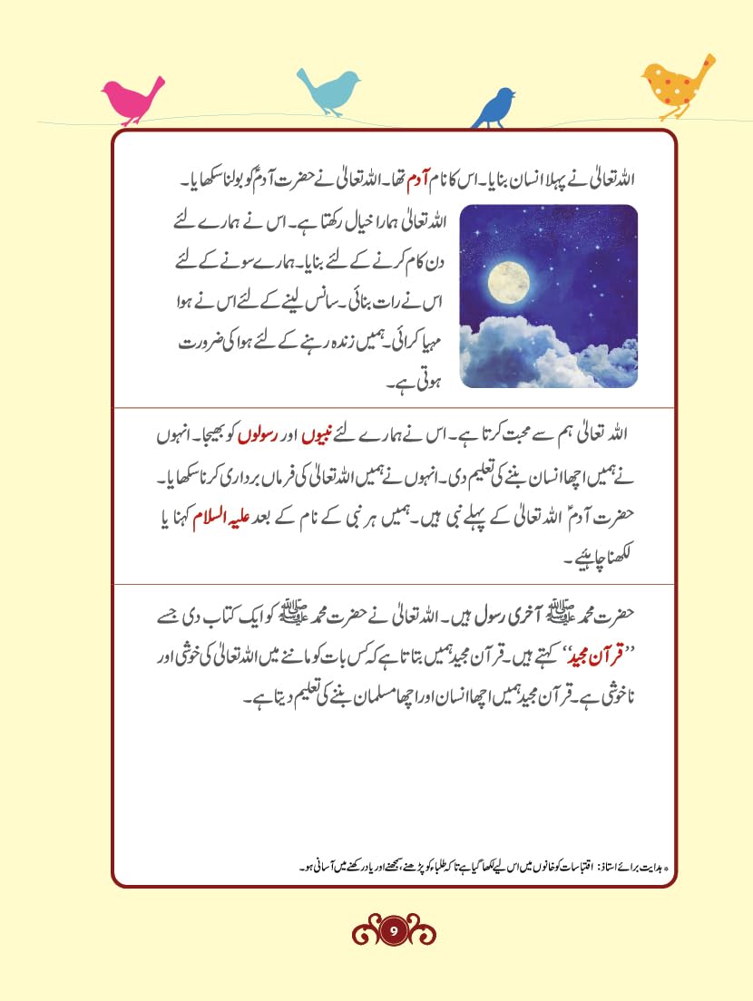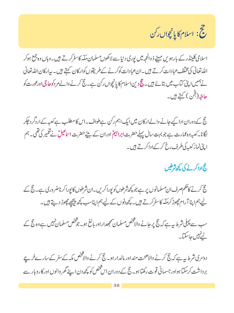 “Islamic Studies Textbook” series in Urdu language is a curriculum work perfect for young Muslims. It starts at preschool and goes up to grade seven. The books in the series are based entirely on the teachings of the Qur’an and authentic Hadith. The series is activity-based covering all essential teachings of Islam a young learner must know. The various Surahs of the Qur’an are introduced and presented in a child-friendly manner and are linked with the lessons.