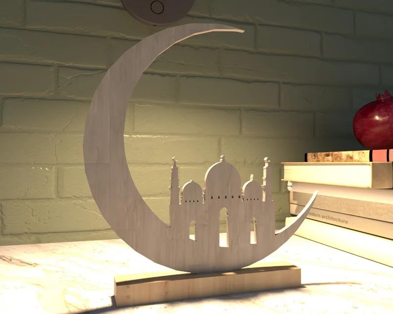 🌙 islamic table decor mosque moon design crafted from pine mdf with 3 mm thickness adds spiritual elegance to ramadan eid home decoration prayer room and festive tabletop setup