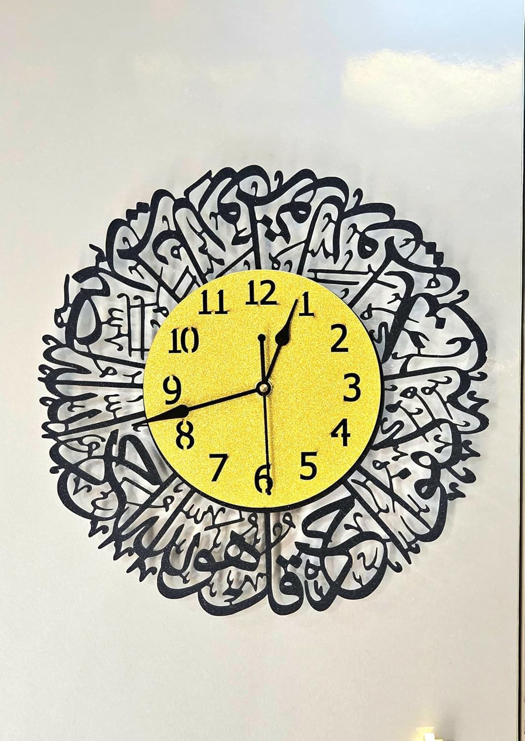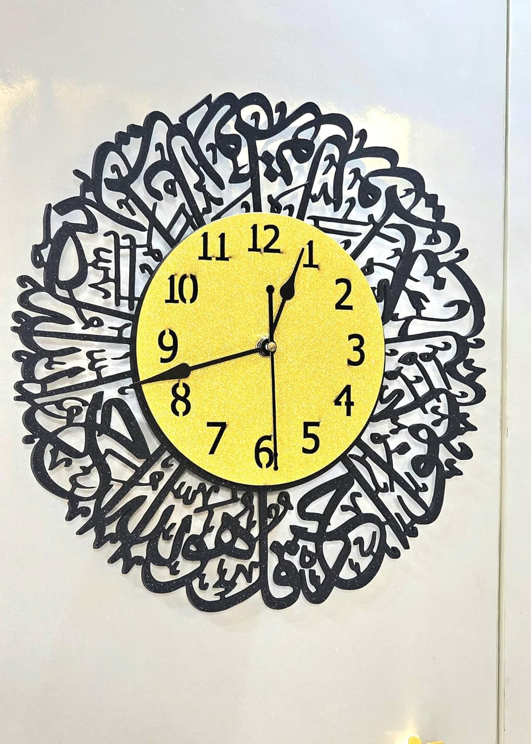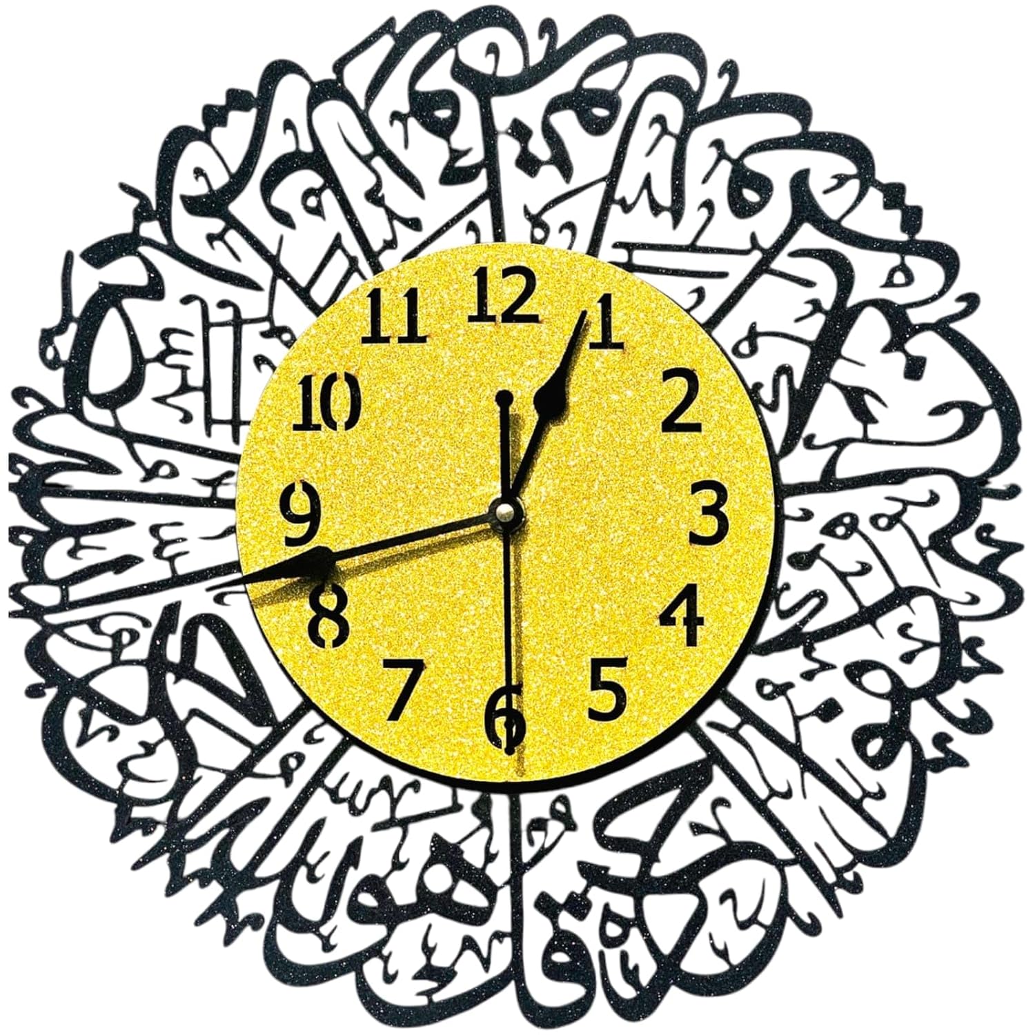 Islamic Wall Clock, 30×30 cm, Gold and Black, Wood Frame, Battery Powered, Analog Display