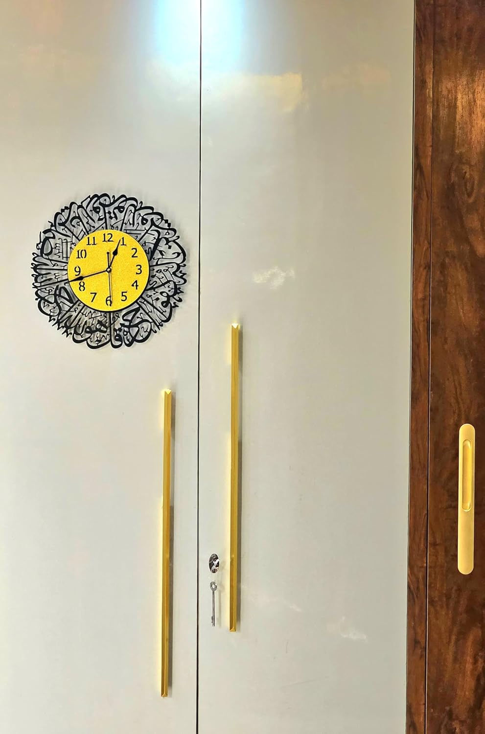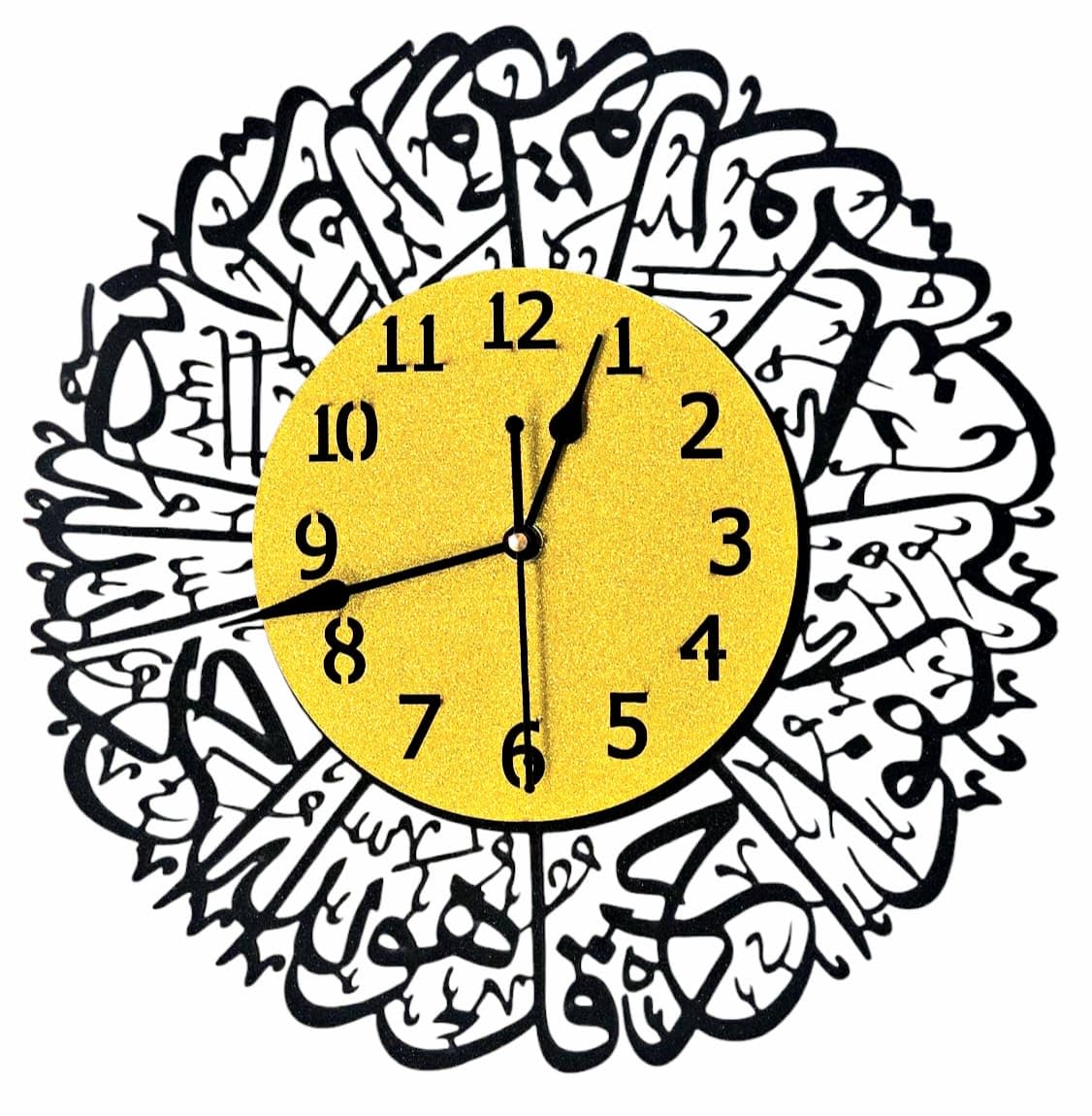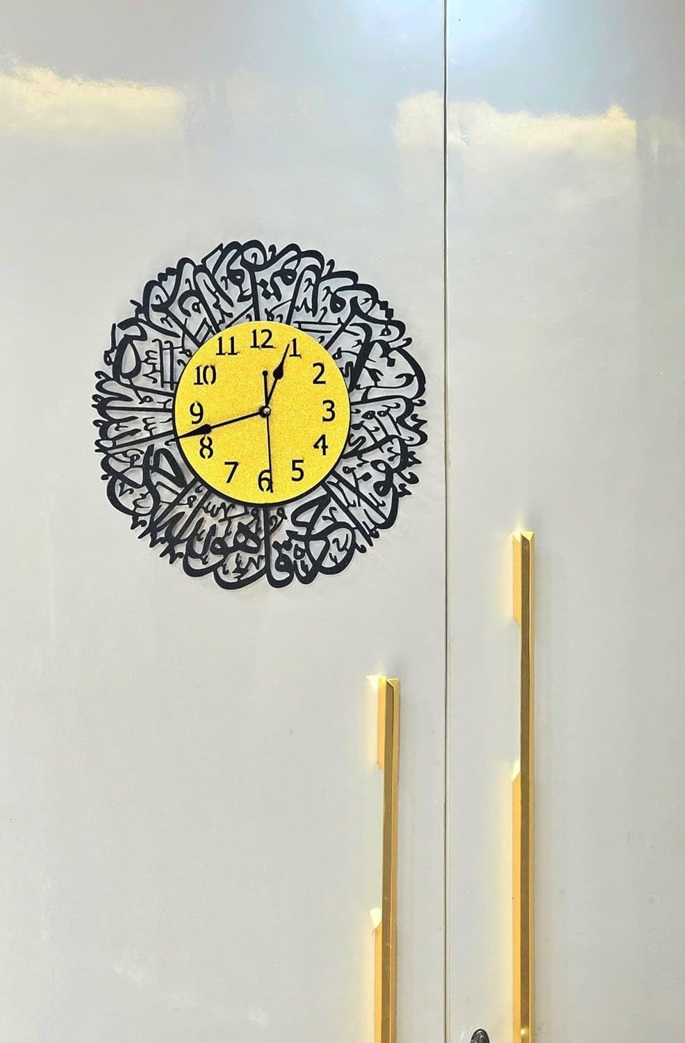 Islamic Wall Clock, 30×30 cm, Gold and Black, Wood Frame, Battery Powered, Analog Display