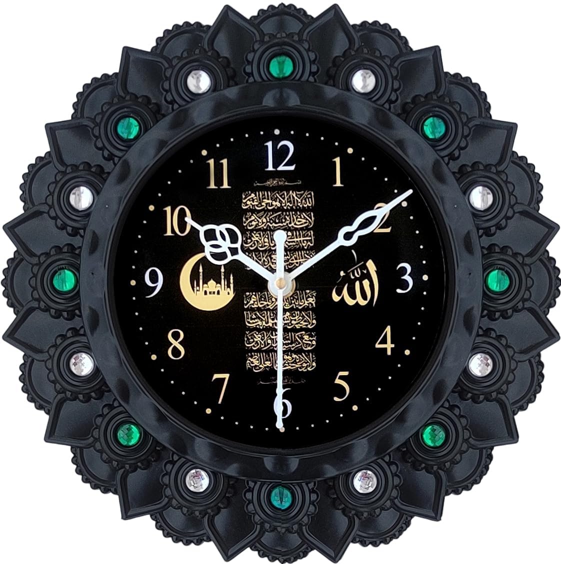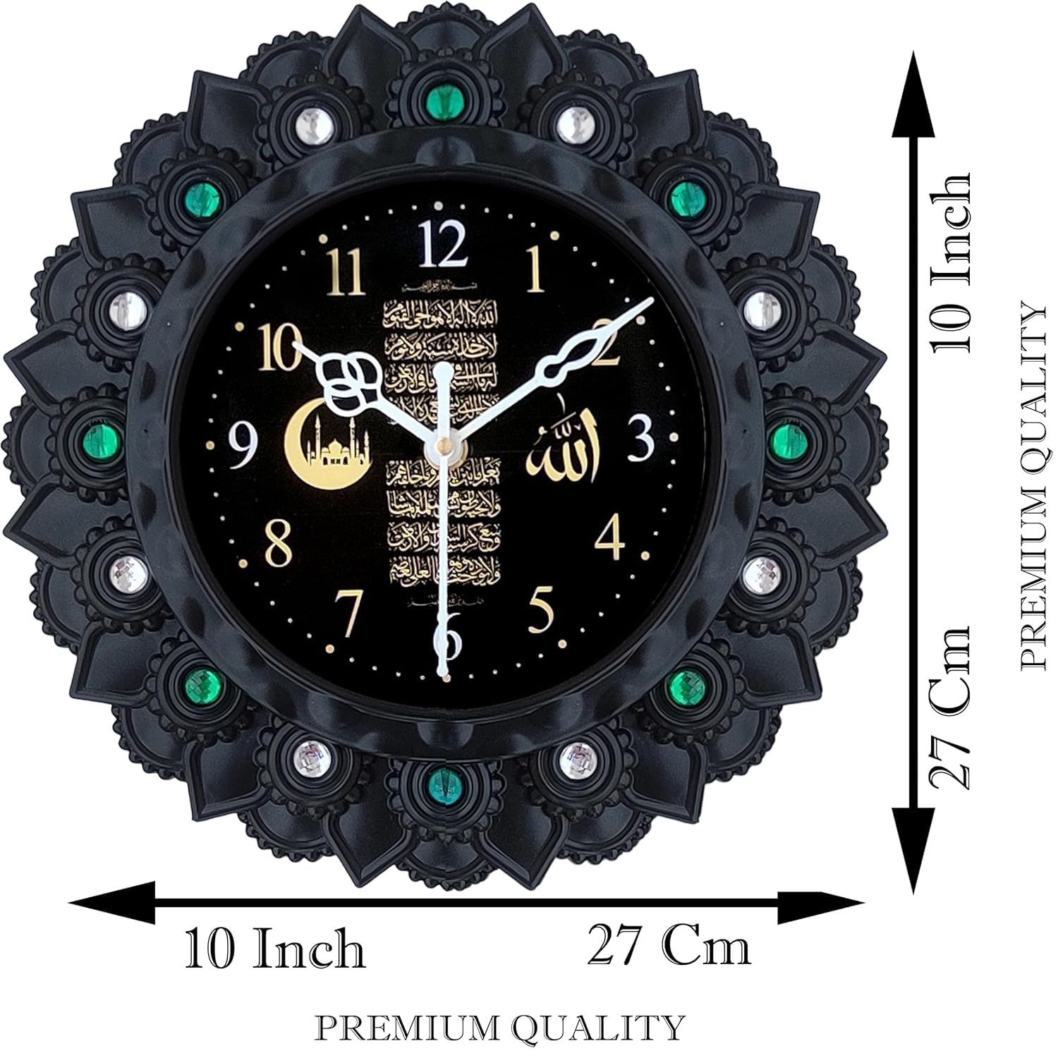 Islamic Wall Clock with Arabic Calligraphy, 27 cm, Black Frame with Decorative