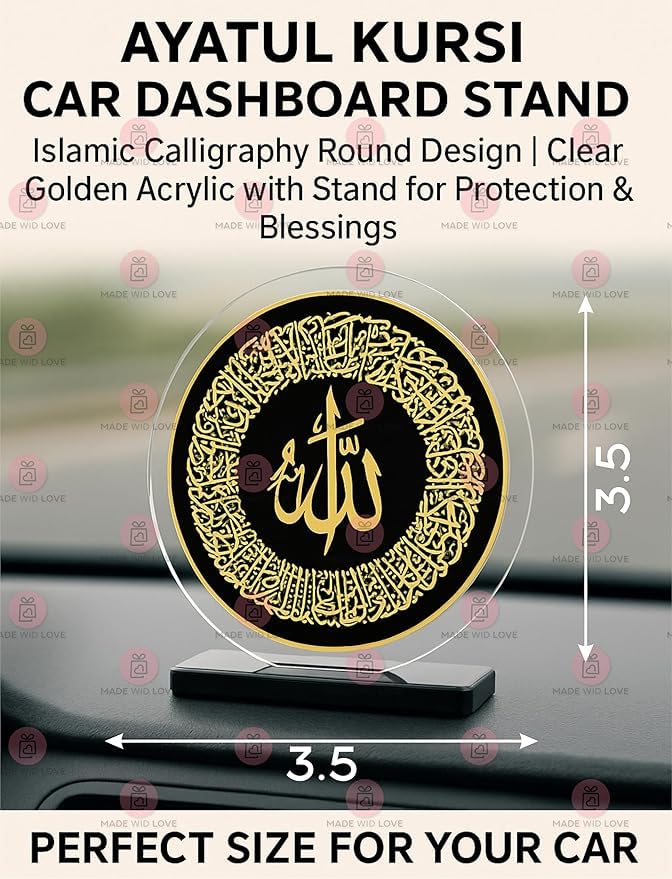SPIRITUAL SIGNIFICANCE: Features the sacred name of Allah with Ayatul Kursi, one of the most powerful verses from the Quran, serving as a constant reminder of faith and protection