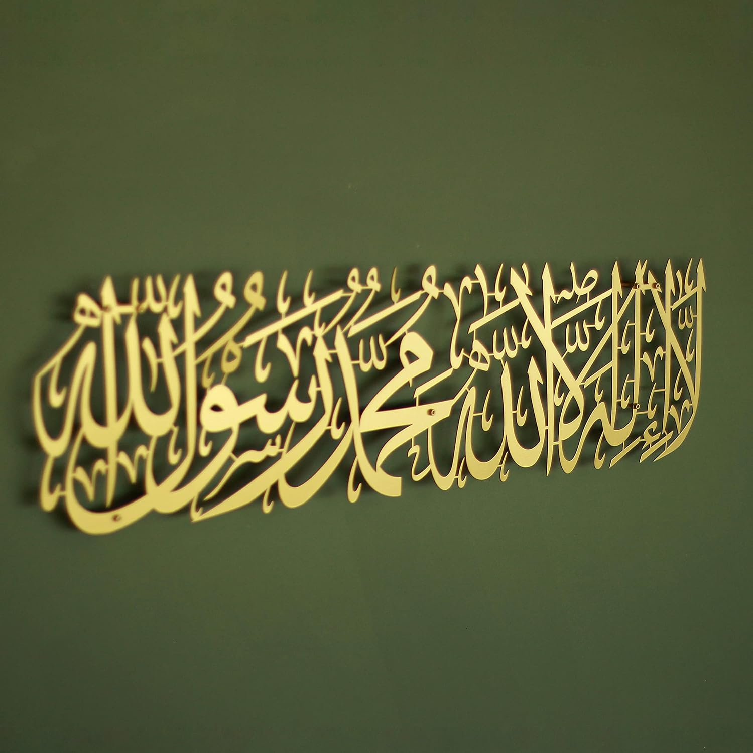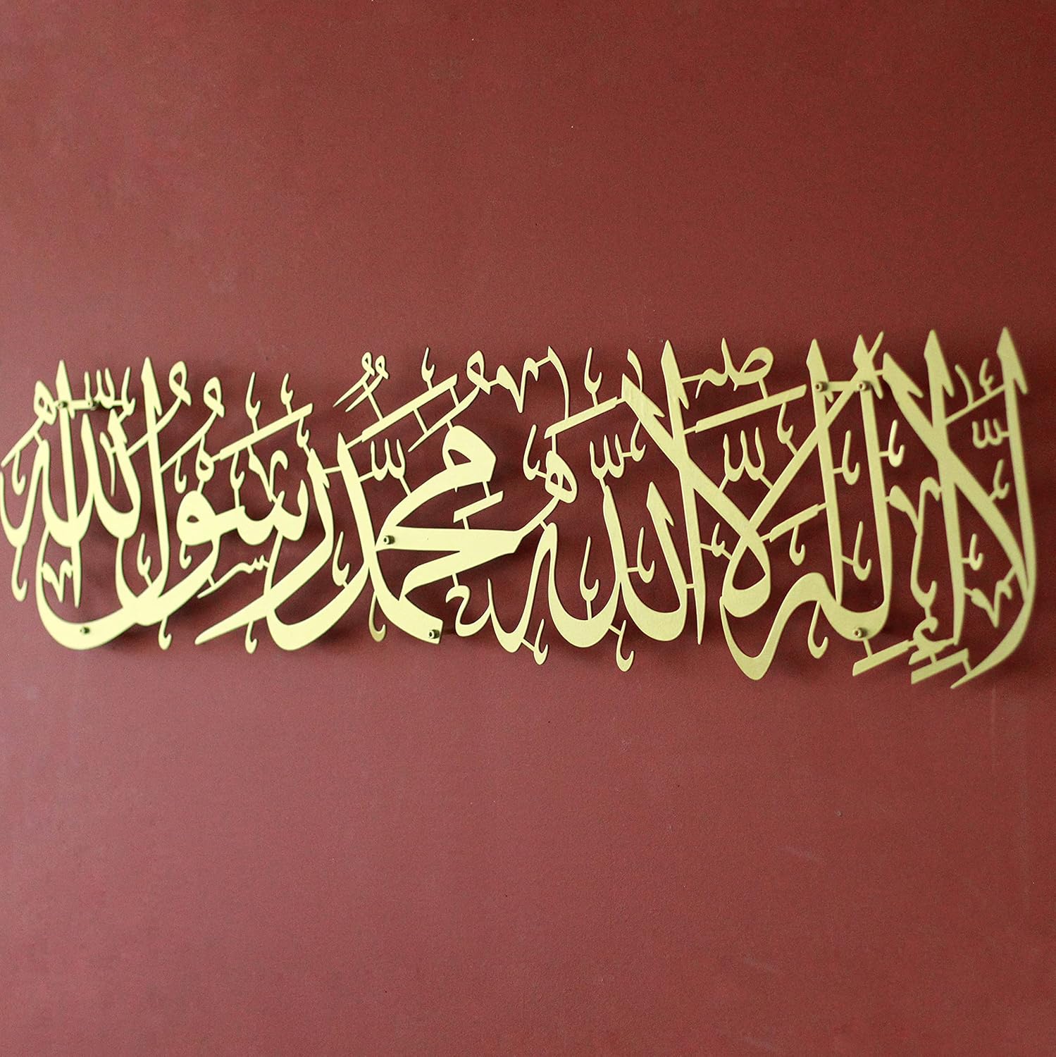 iwa concept Metal First Kalima La ilaha illallah Muhammad Rasulallah Islamic Wall Art, Unique Quran Verse Wall Decor, Gift for Muslims at Ramadan Eid (Medium, Gold)