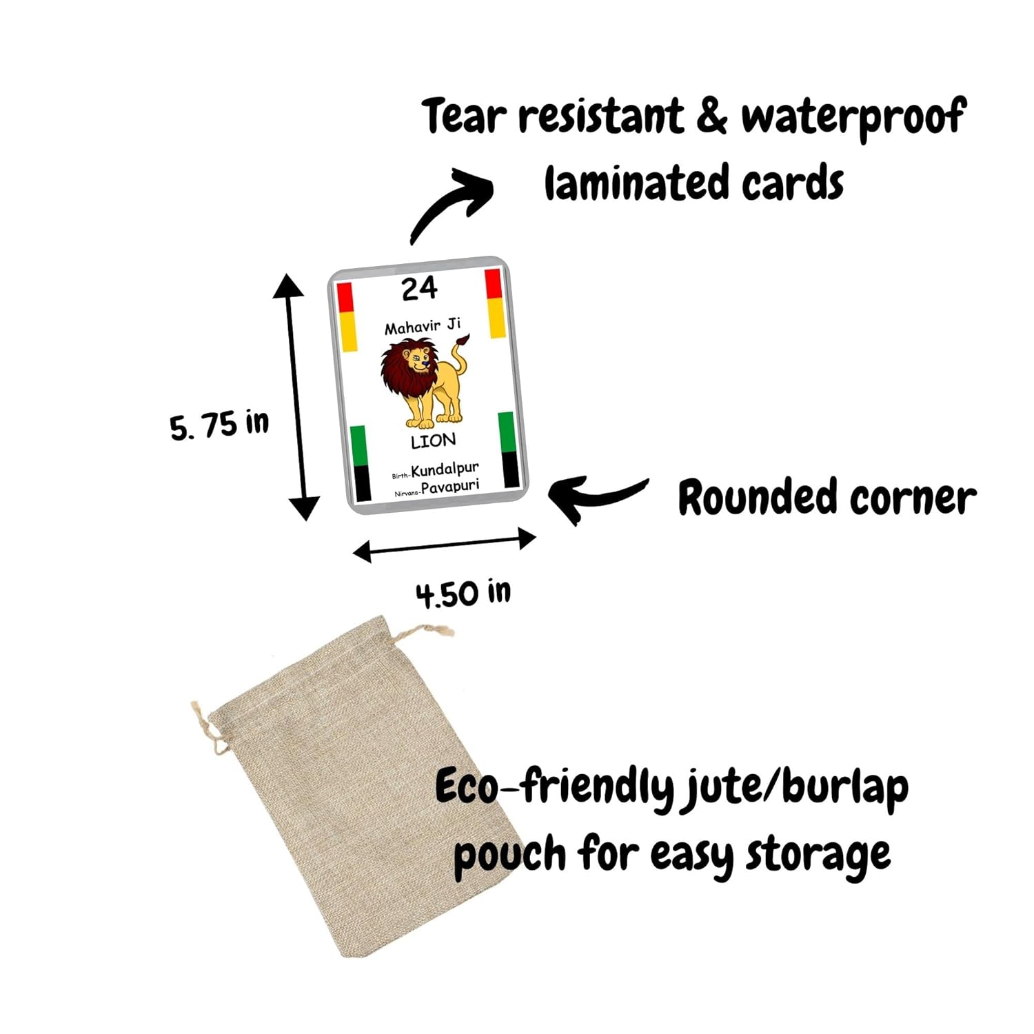 Each flash card set comes in a beautiful eco-friendly jute/burlap pouch for easy storage