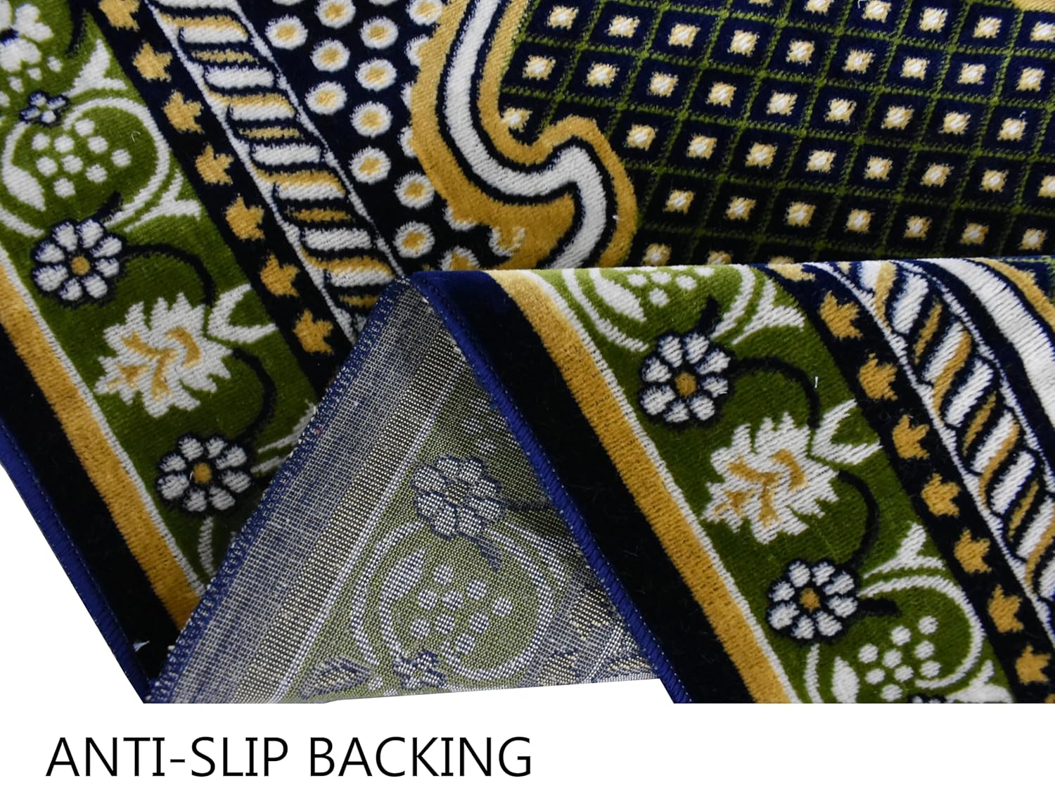 Non-Slip & Durable Build The sturdy backing keeps the namaz mat securely in place, while reinforced stitching ensures long-lasting use even with regular prayers.
