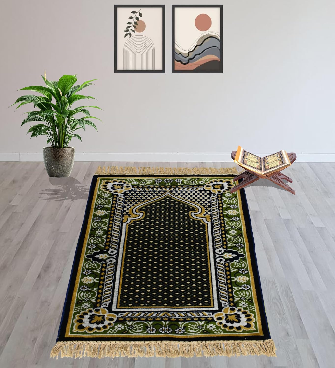 ✔ Premium Velvet Comfort Made from high-quality velvet mat fabric, this janamaz prayer mat offers a soft, plush surface that feels gentle on knees and feet during daily namaz and extended prayer sessions.