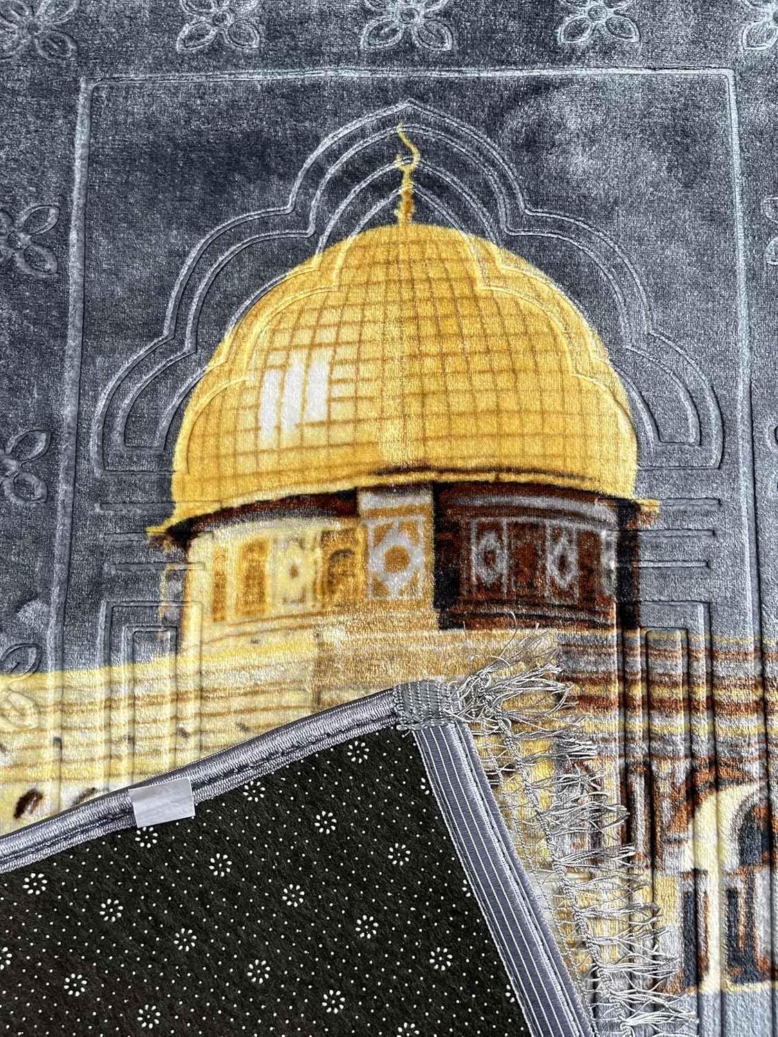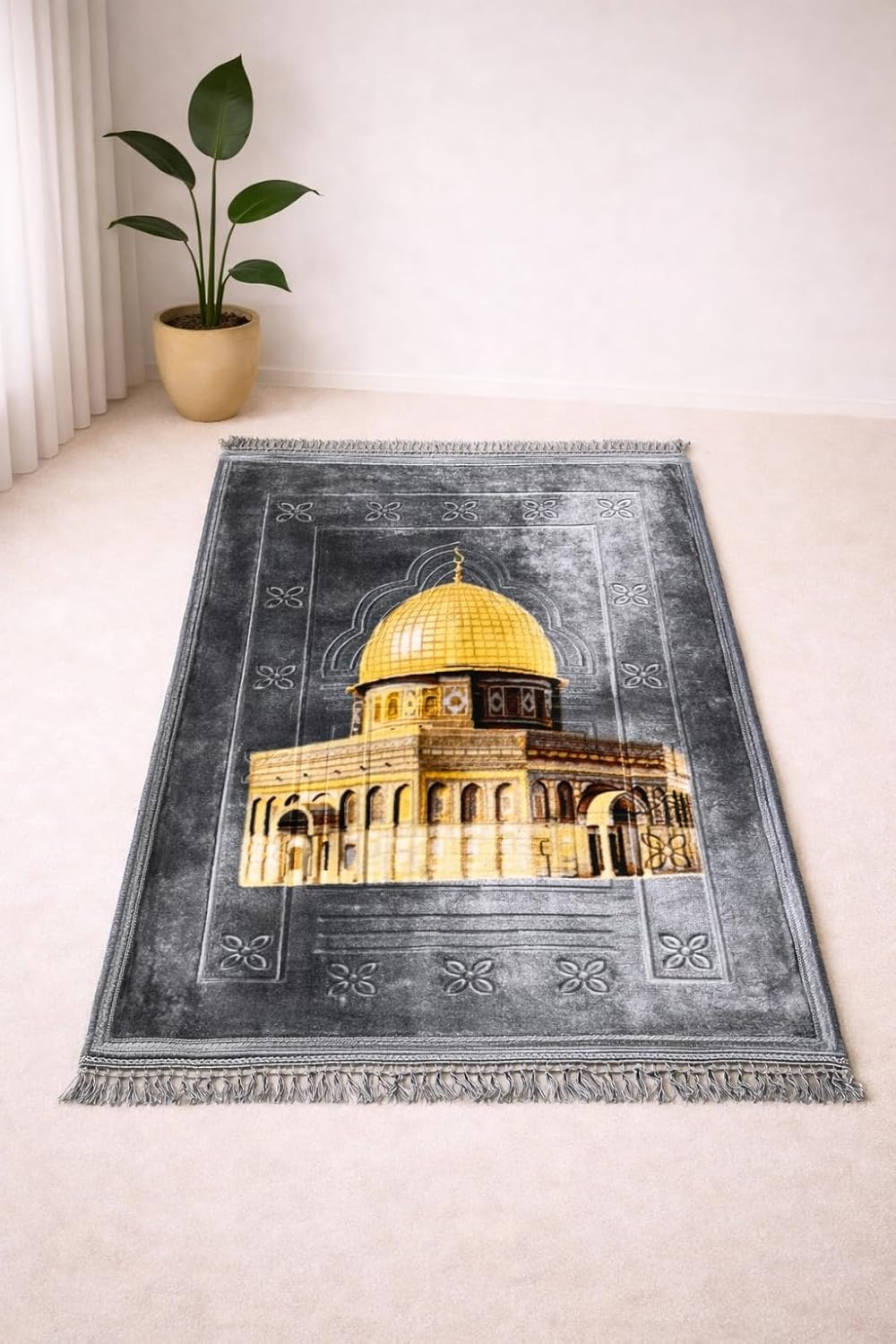 Janamaz Prayer Mat – Turkey Soft Velvet Namaz Mat | Premium Aasan for Daily Salah, Janimaz Namaz, Comfortable & Durable Prayer Mat | 44×27 Inch, Printed – Greyy