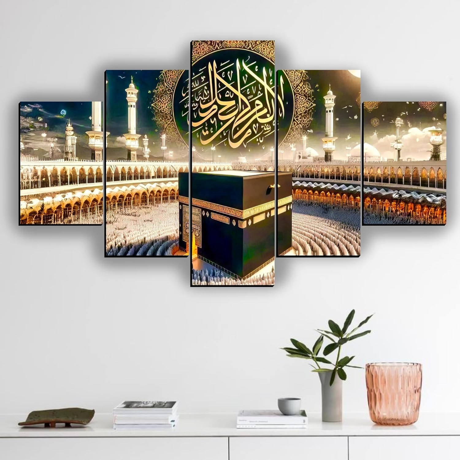 Spiritual Wall Decor: Features the iconic Kaaba and serene views of Makka and Madina, embodying faith and devotion.