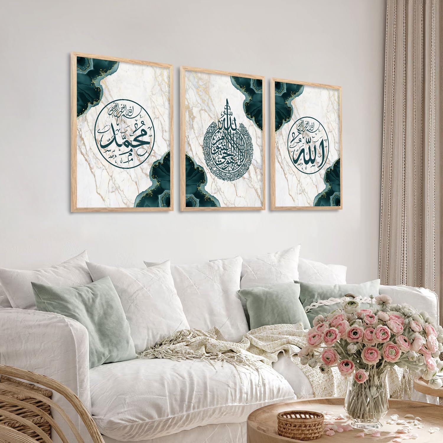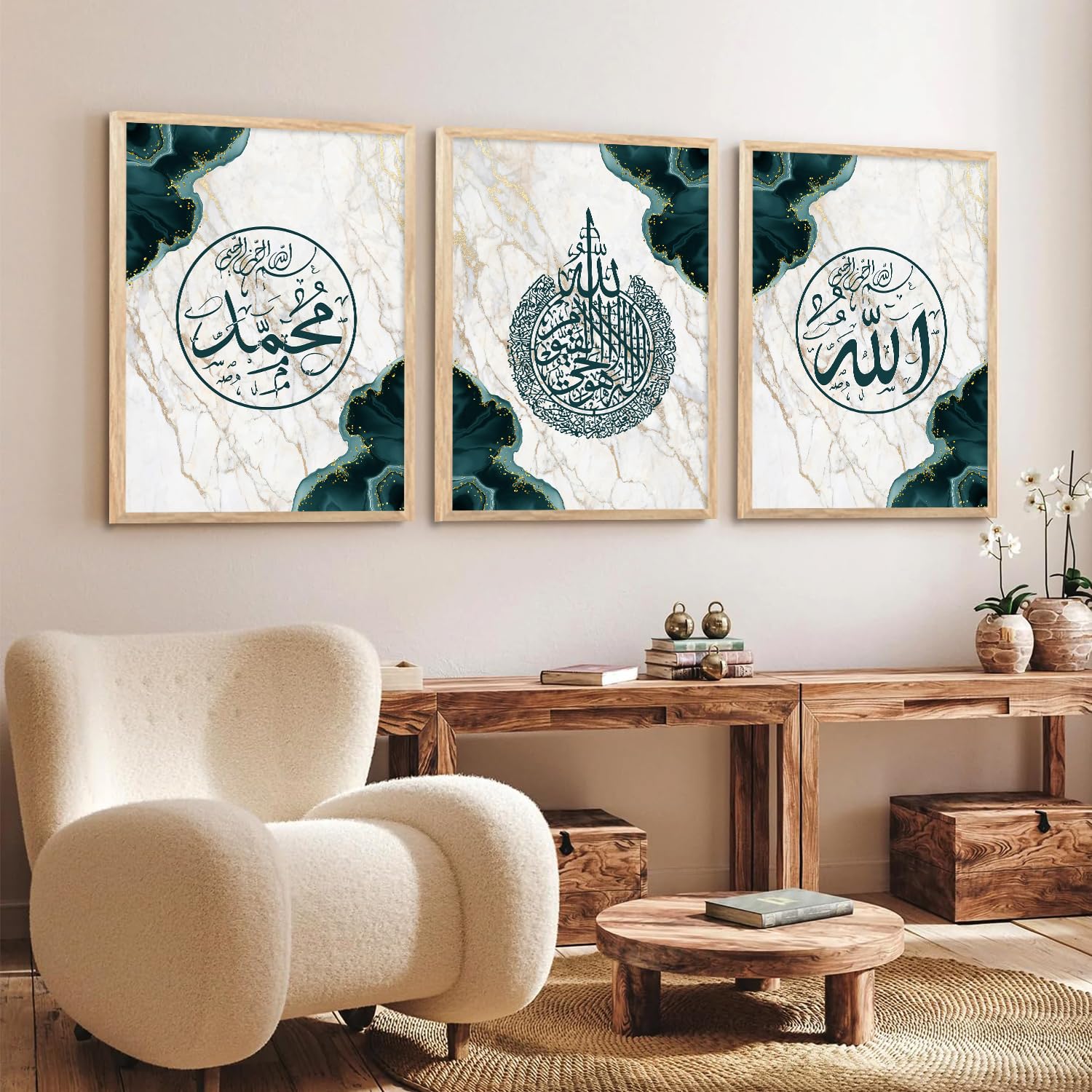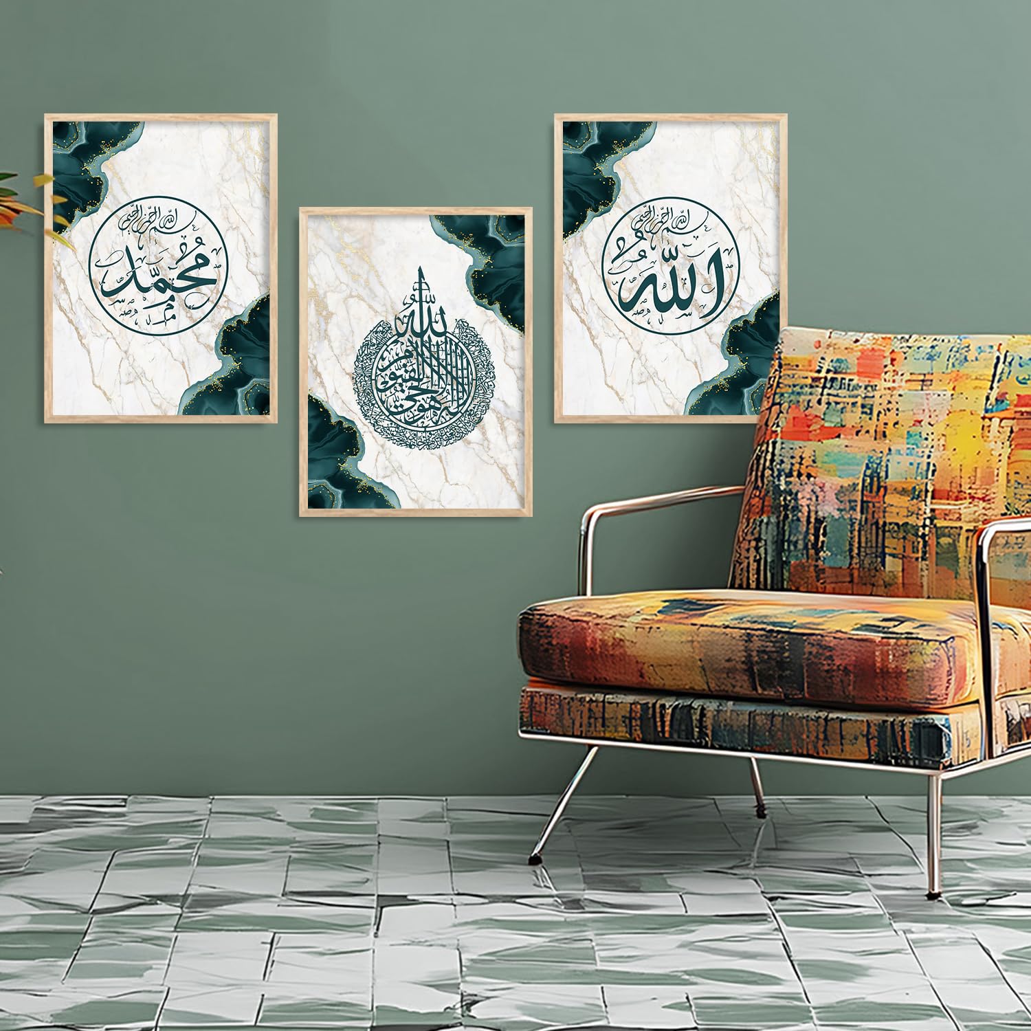 Kalit Kala Decor Painting Islamic Art Home Decoration Paintings With Frame For Living Room Bed Room And Hotel Wall Decortion Digital Reprint Engineered Wood Set of 3 (Islamic02, 13×17, Framed)