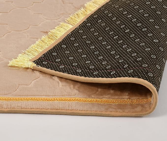 KETOSTICS® Velvet Kids Prayer Mat 50×80 CM Musalla Janamaz for Namaz Muslim Brown (Beige)
