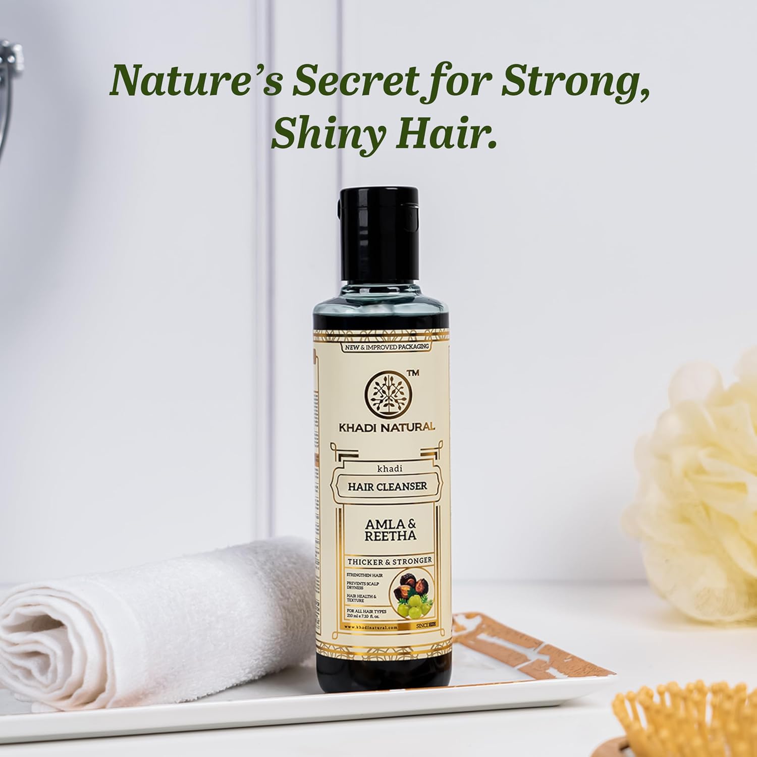 Khadi Natural Amla & Reetha Hair Cleanser | Herbal Shampoo for Hair Cleansing & Scalp Care | Helps Maintain Hairs Freshness & Improve Hair Texture | Gentle Herbal Hair Care | Suitable for All Hair Types | 210ml