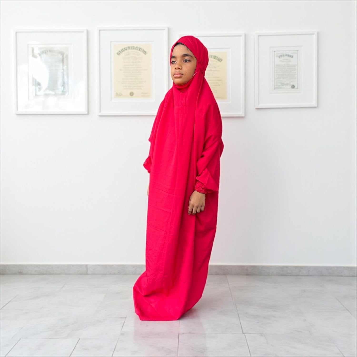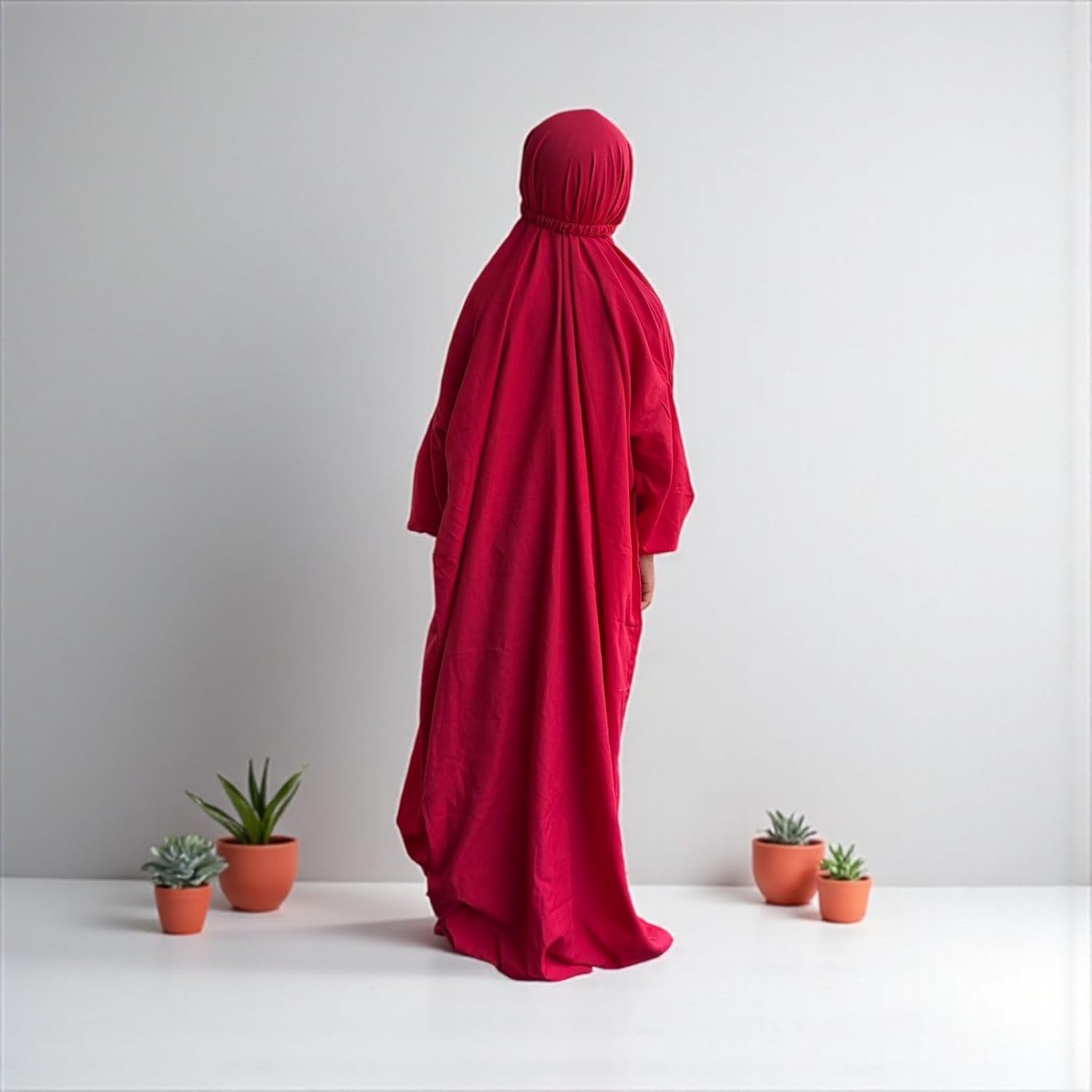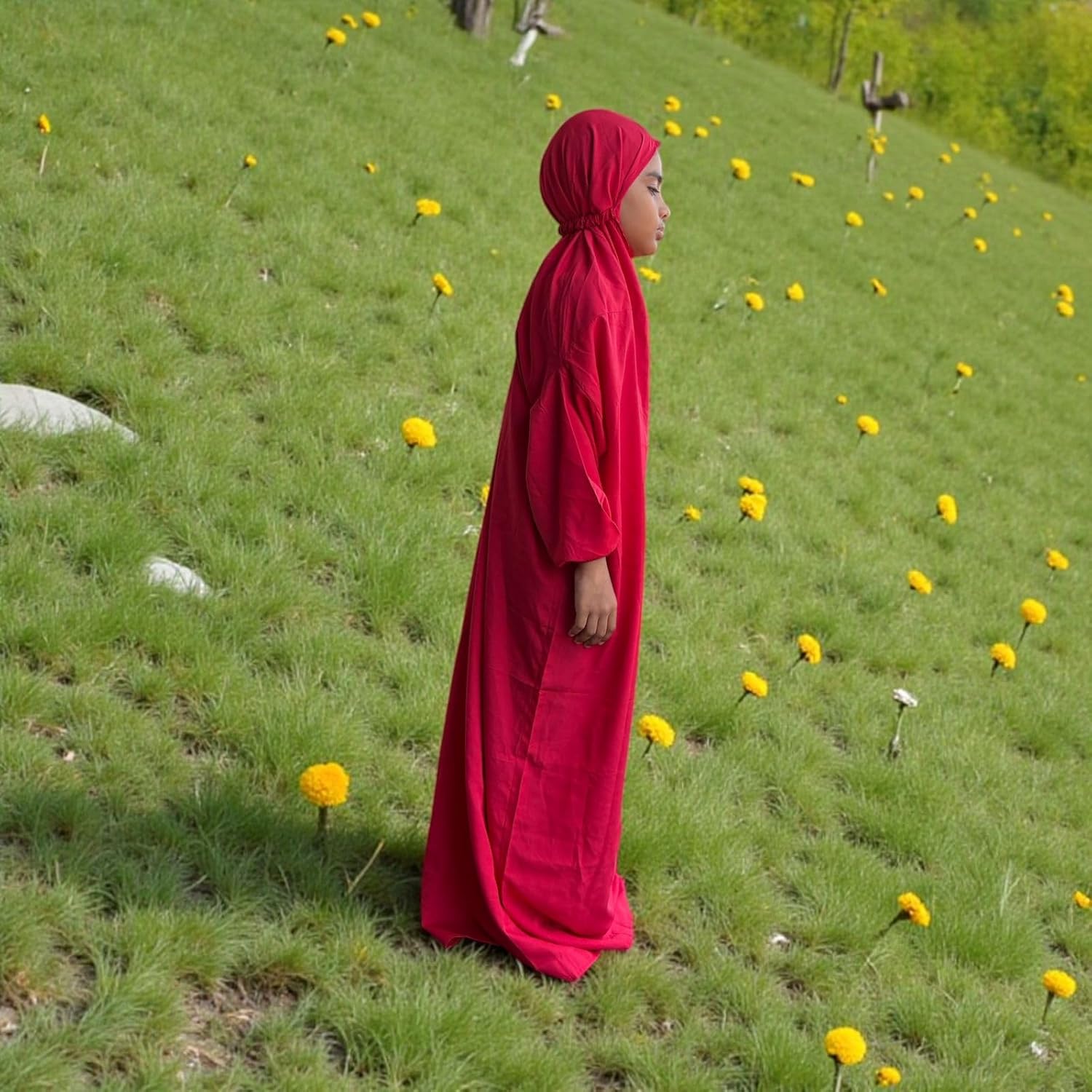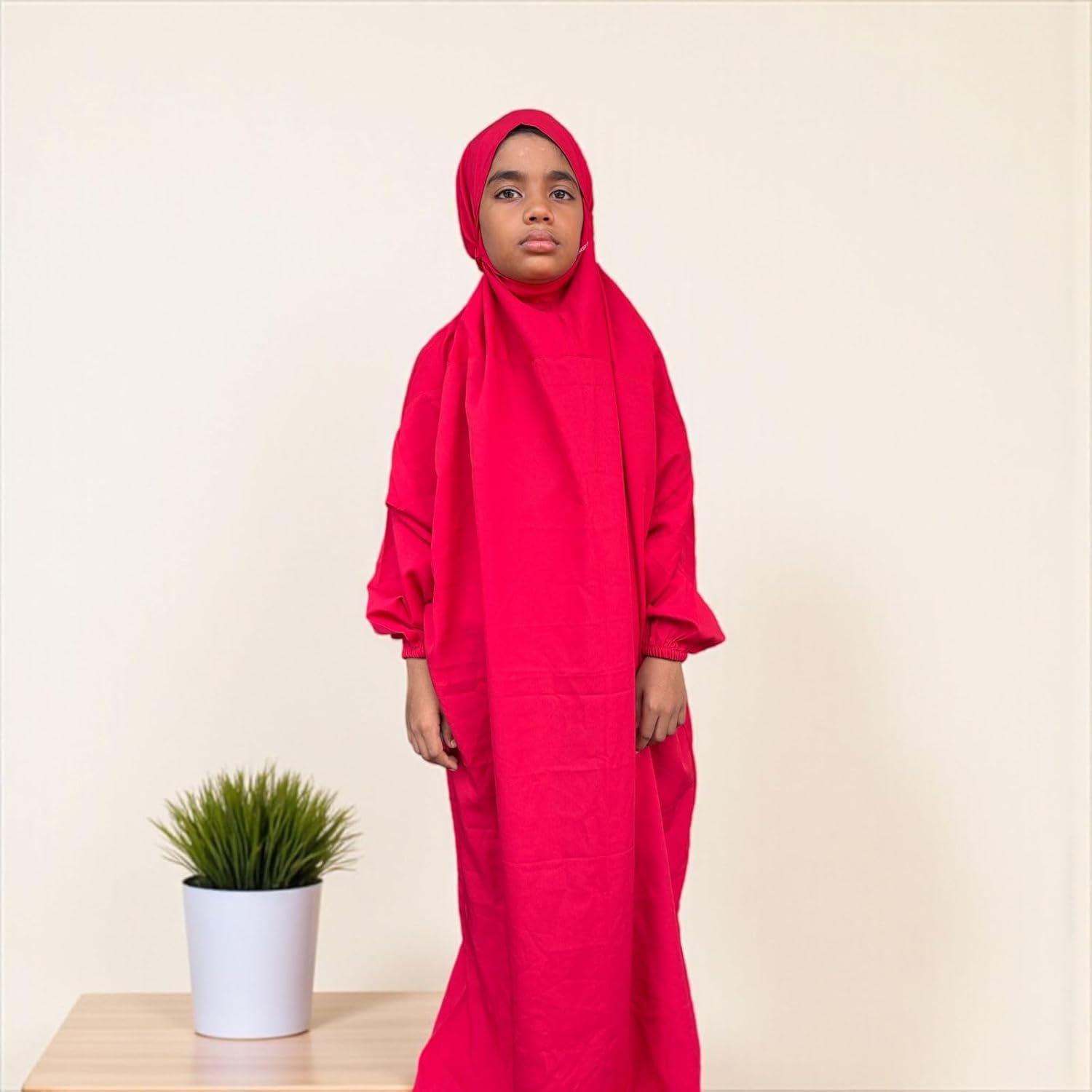 This Kids Prayer Dress is designed for young girls to pray with comfort, confidence, and modesty. Made with soft, breathable, and lightweight fabric, it provides full coverage while ensuring ease of movement. The attached hijab and long dress style makes it convenient and quick to wear, perfect for daily prayers, madrasa, and Islamic occasions. A modest and elegant outfit that encourages kids to embrace prayer with devotion.