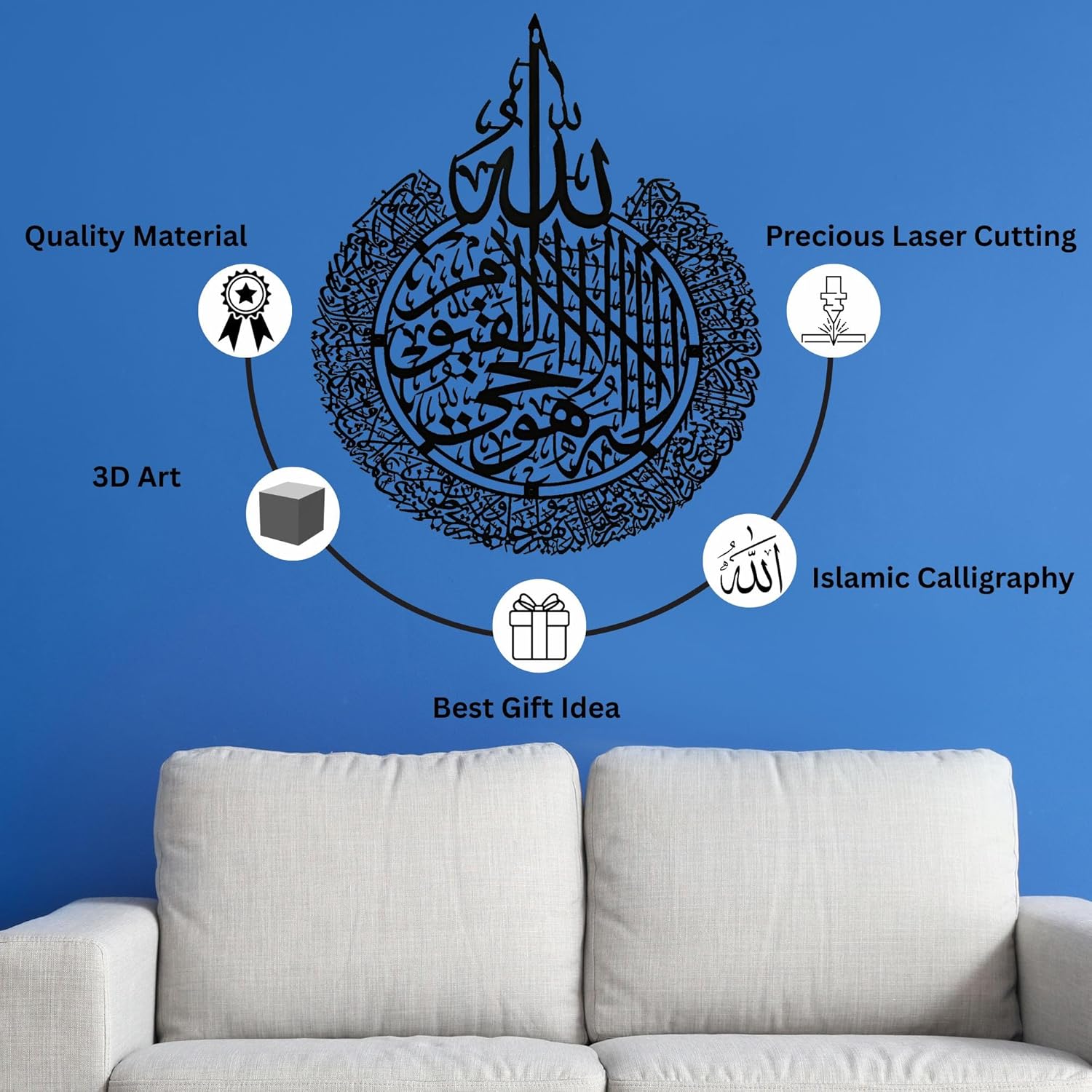 KIING Ayatul Kursi Metal Islamic H 30 Inch X W 24 Inch Wall Decor Art Arabic Calligraphy Wall Art for Perfect Muslim Gifts