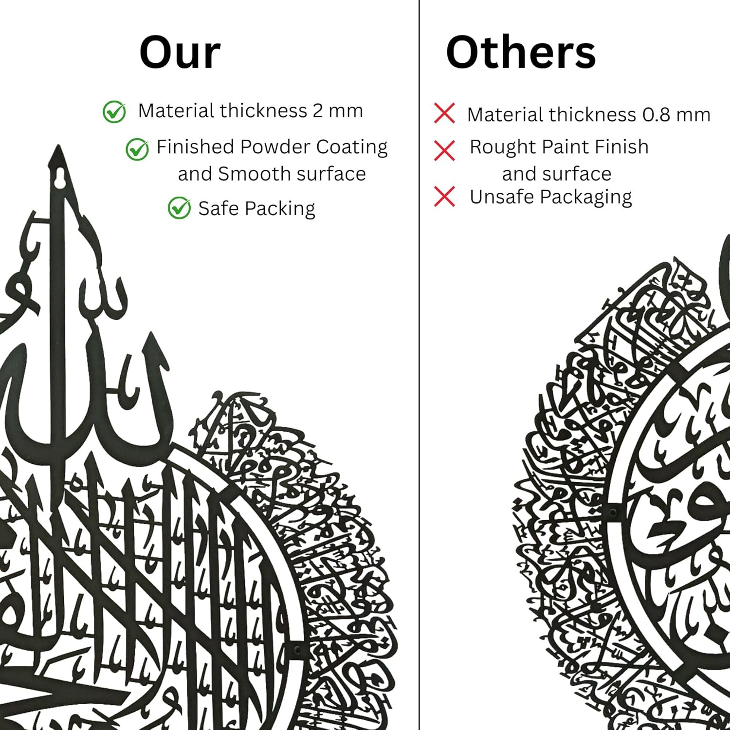 𝗘𝘅𝗾𝘂𝗶𝘀𝗶𝘁𝗲 𝗗𝗲𝘀𝗶𝗴𝗻 & 𝗣𝗿𝗲𝗰𝗶𝘀𝗶𝗼𝗻 𝗖𝗿𝗮𝗳𝘁𝘀𝗺𝗮𝗻𝘀𝗵𝗶𝗽: Intricately laser-cut metal design with precise Arabic calligraphy, ensuring a clean and polished look that enhances any space with elegance and style.