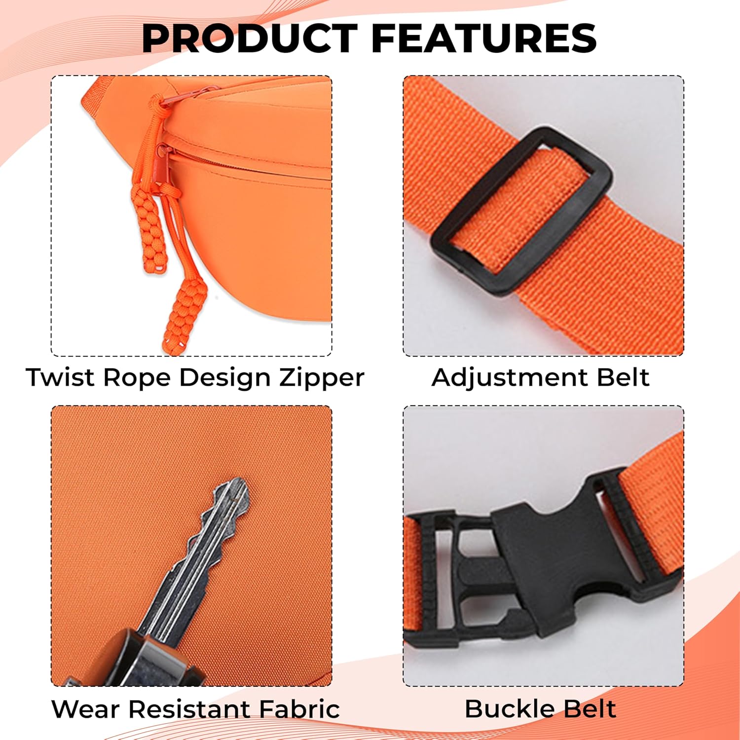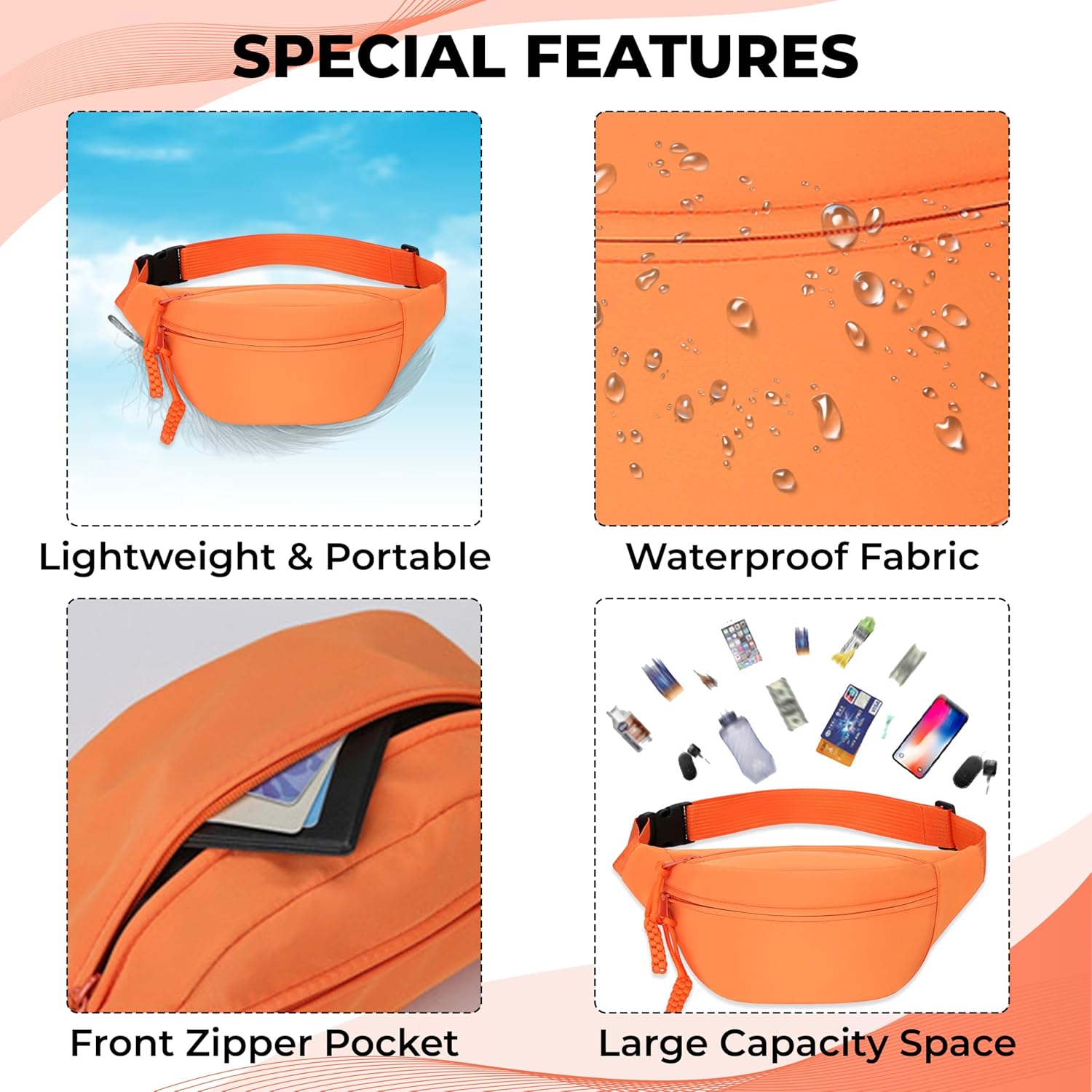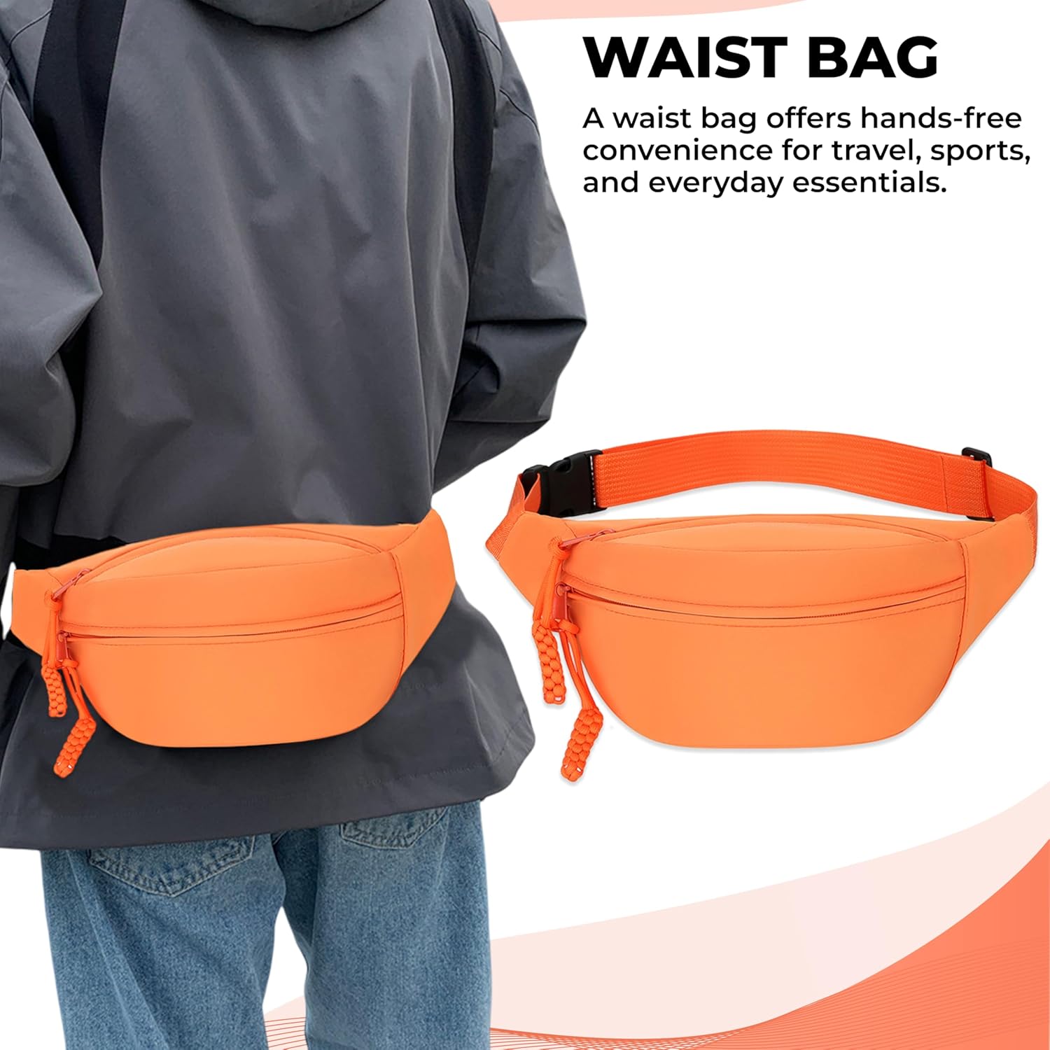 Kraptick Waist Bag | Fanny Pack & Crossbody Bag for Travel, Running, Hiking & Gym | Waterproof & Lightweight Belt Bag | Adjustable Money Belt & Waist Pouch for Men & Women |(Orange)